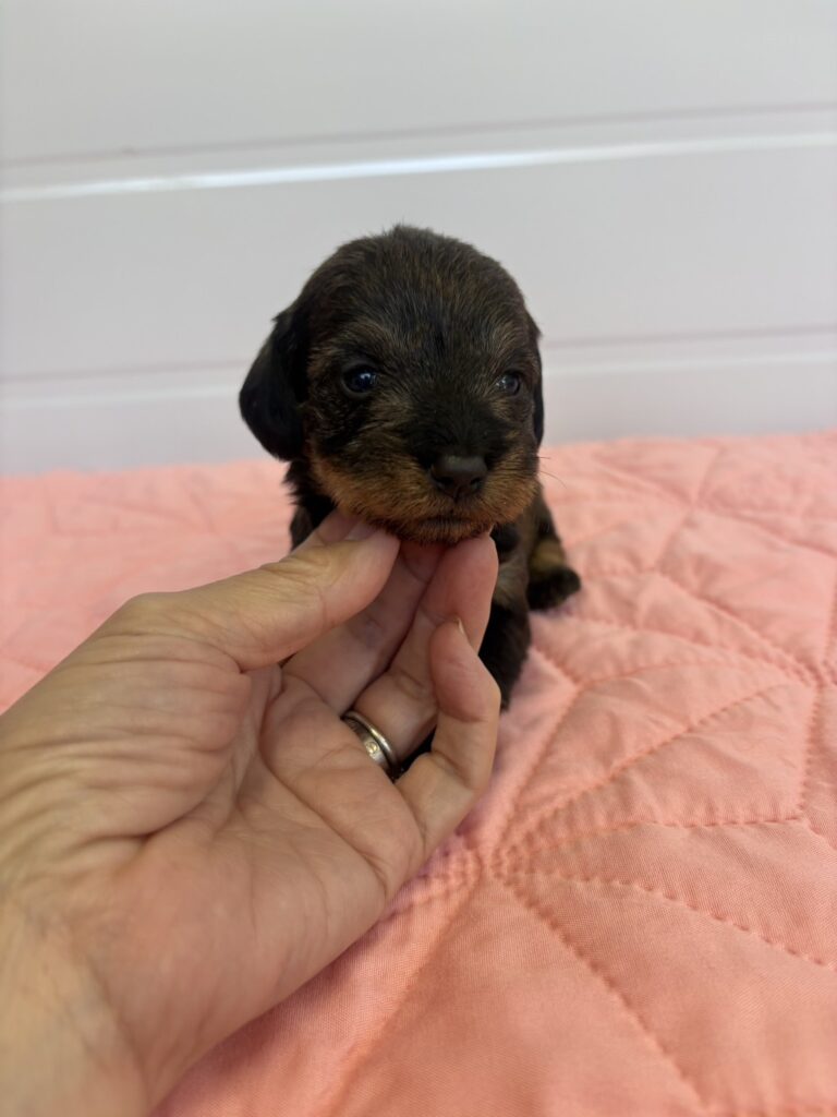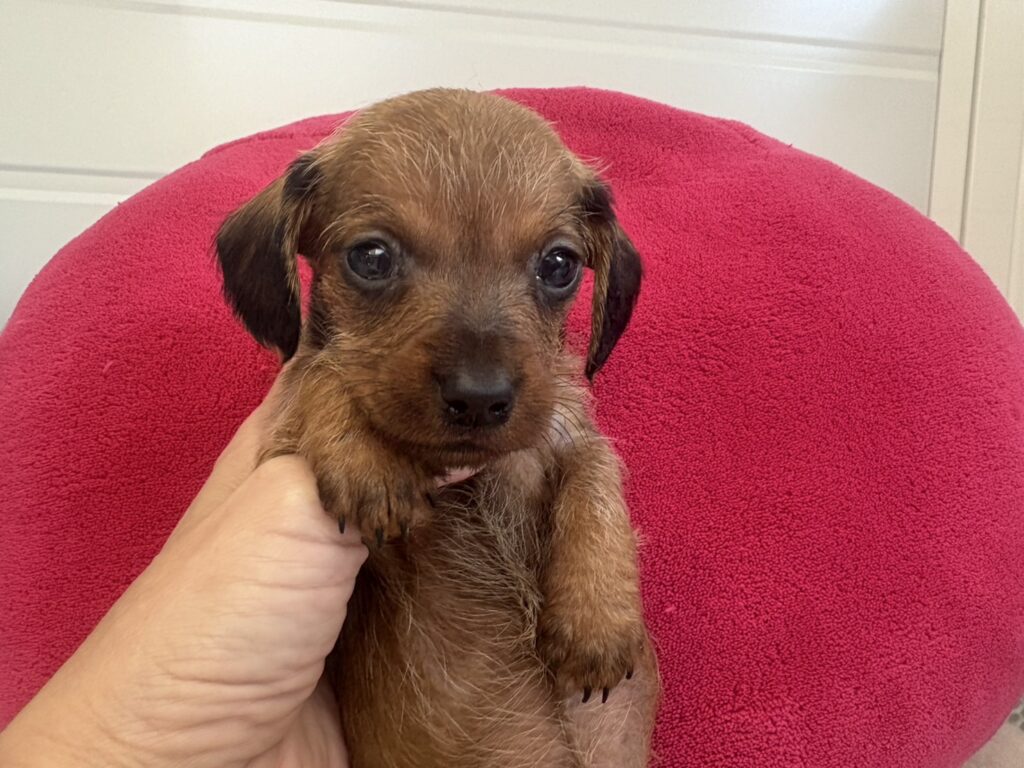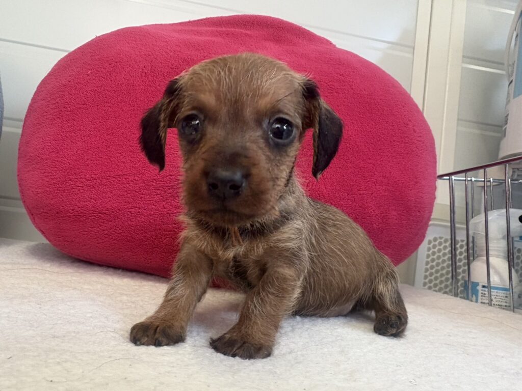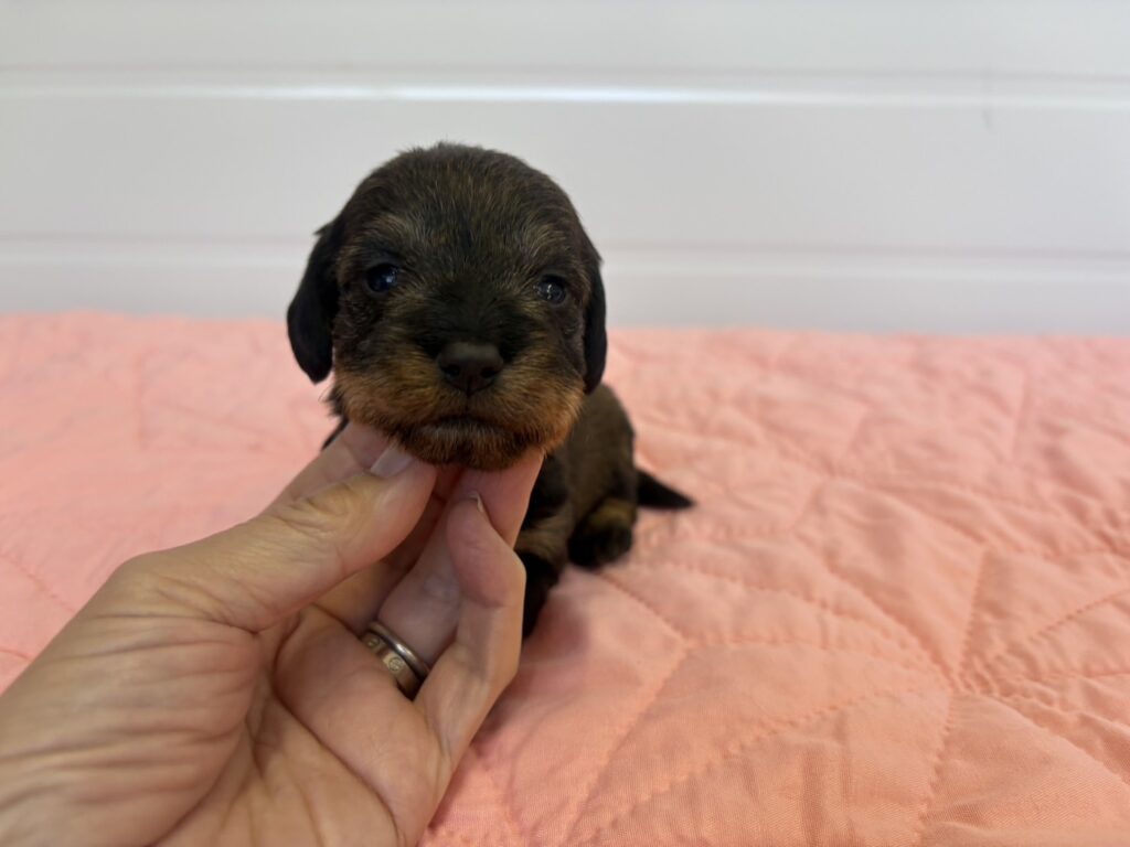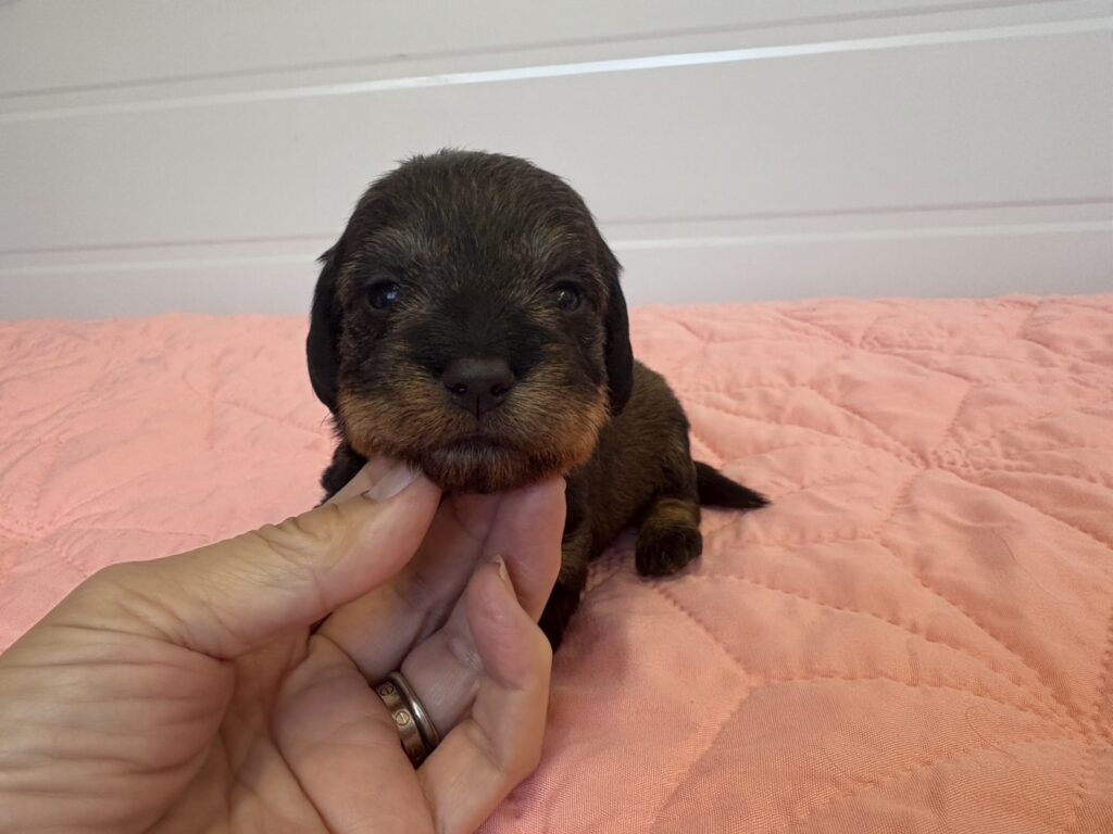 ミニチュアワイヤーダックスフンドの子犬が産まれました。父、母犬ともにJKCチャンピオン。現在、2頭のご紹介です。