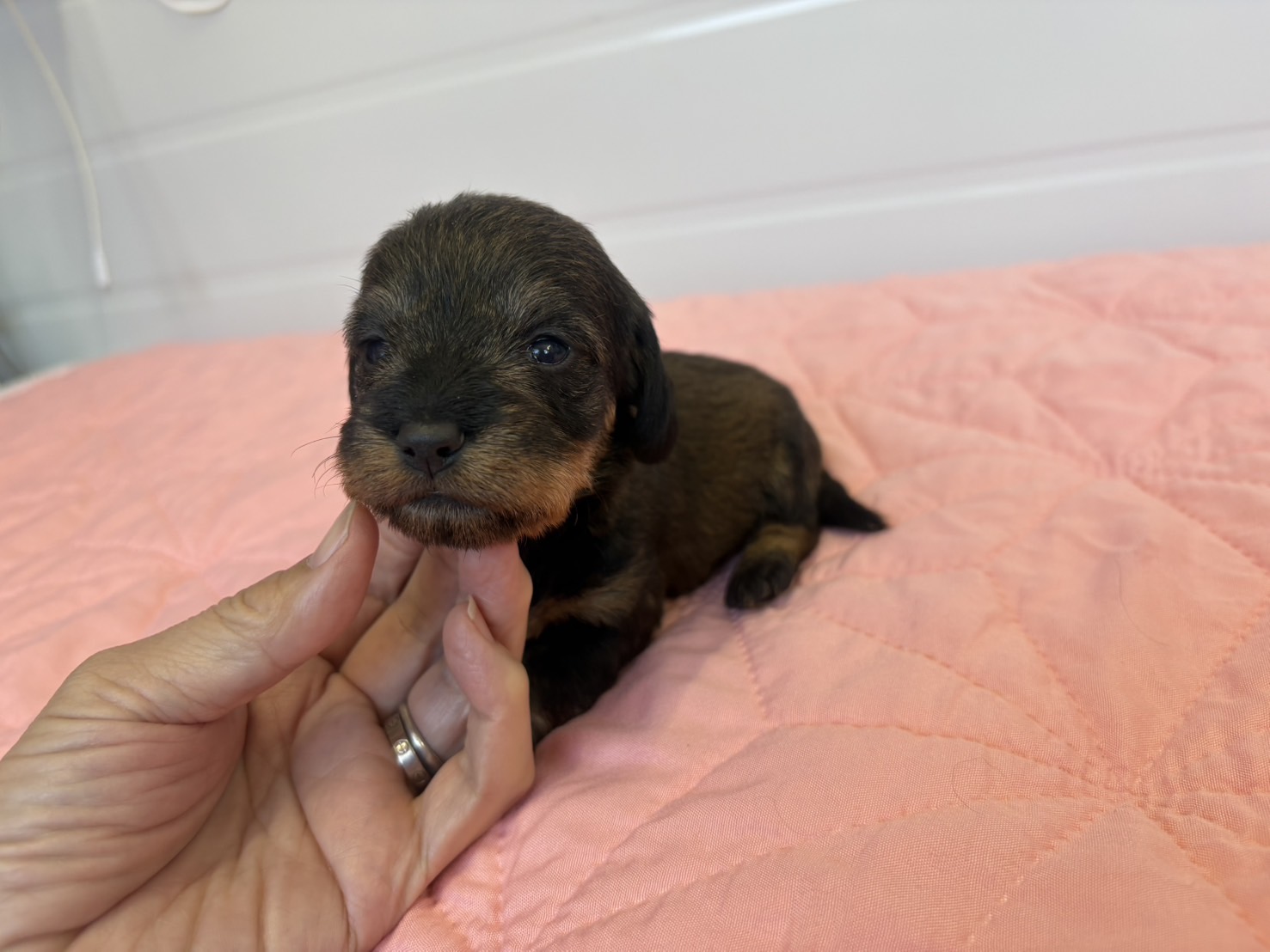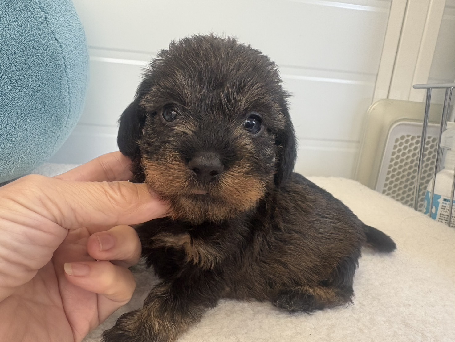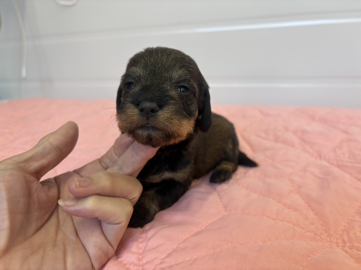 ミニチュアワイヤーダックスフンドの子犬が産まれました。父、母犬ともにJKCチャンピオン。現在、2頭のご紹介です。