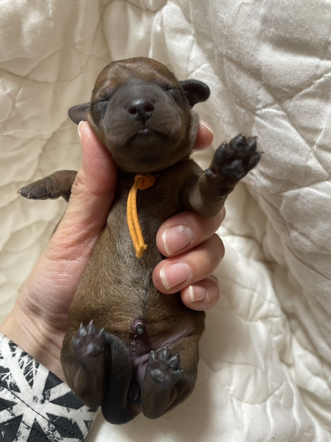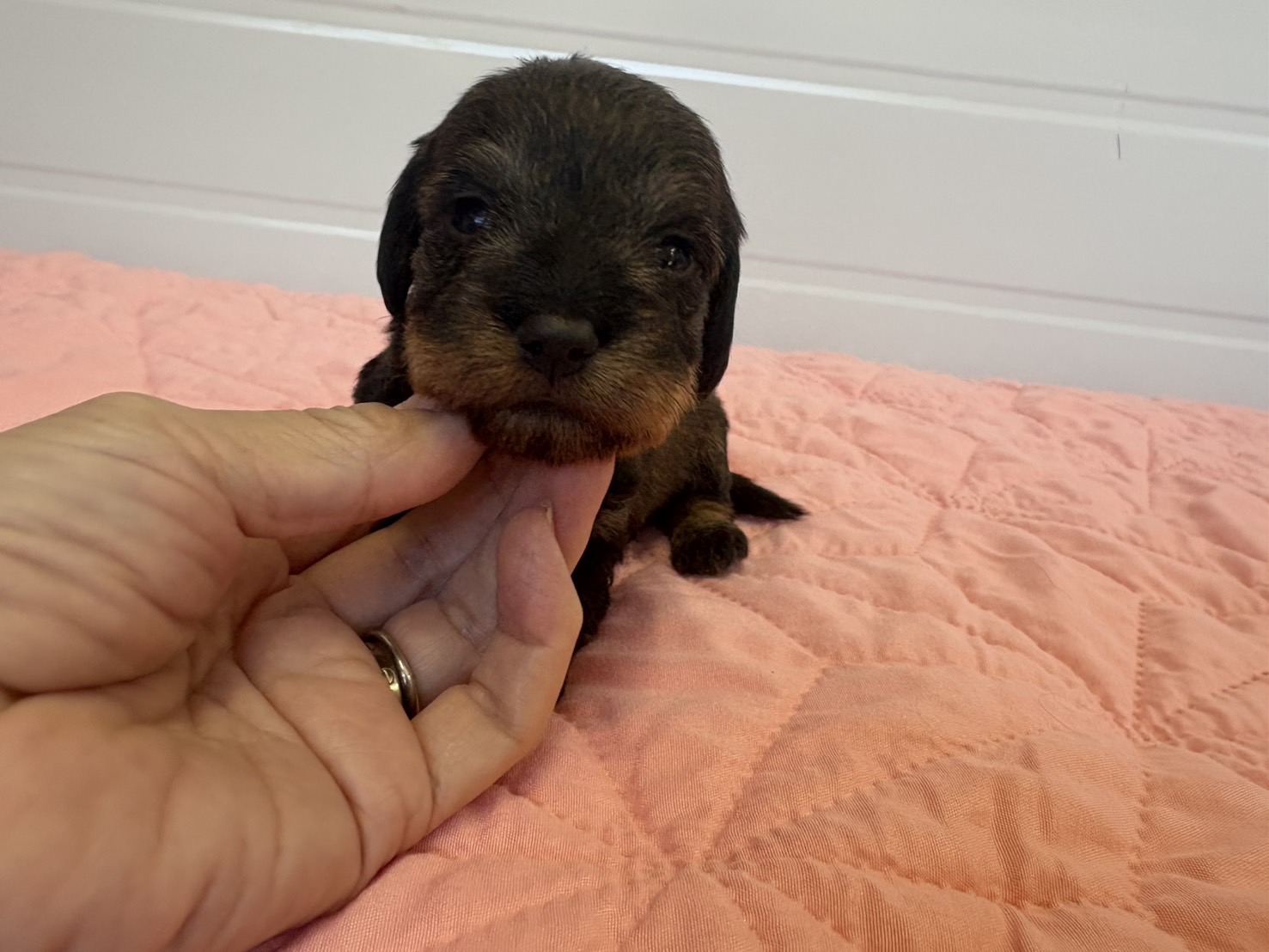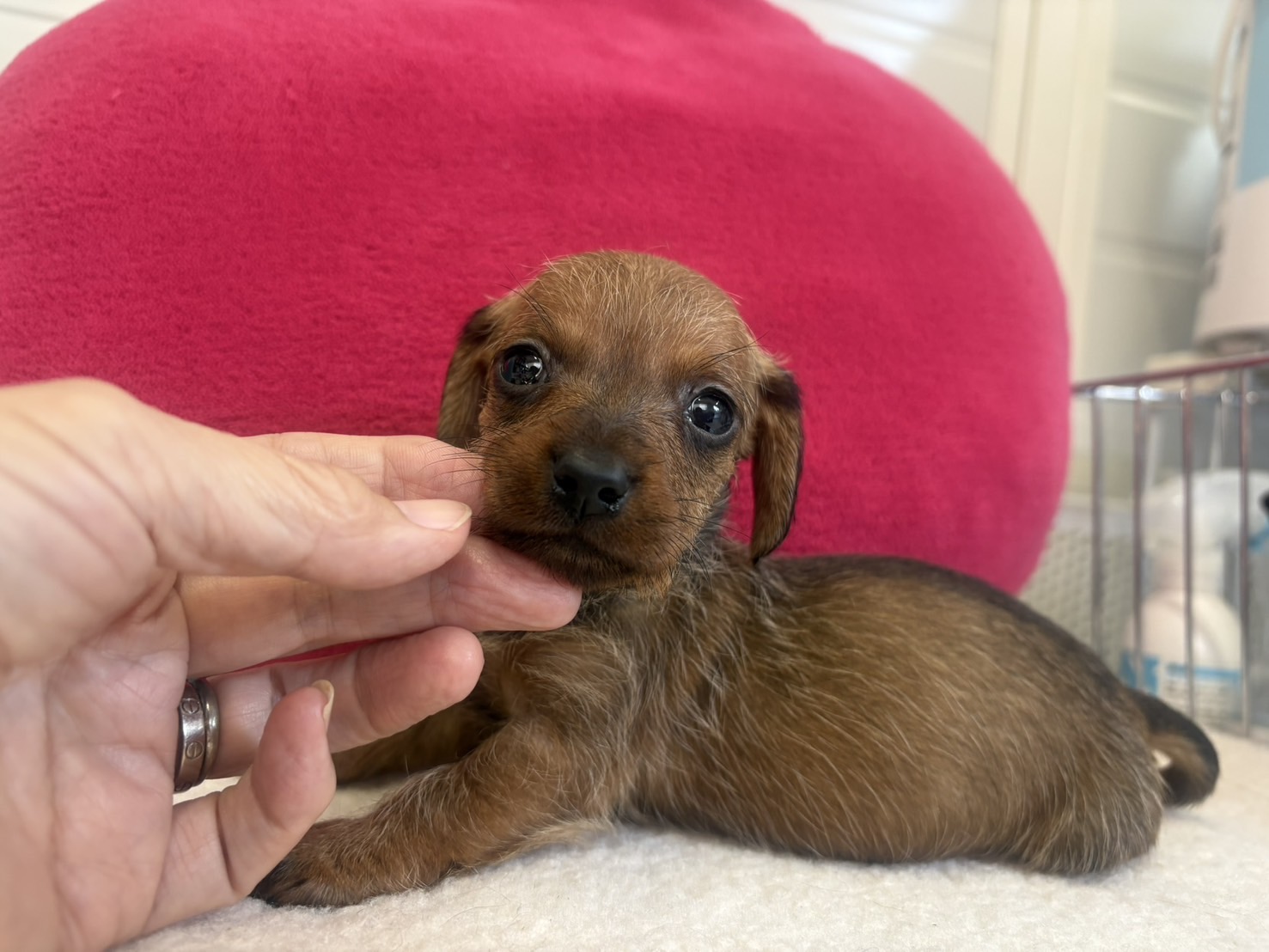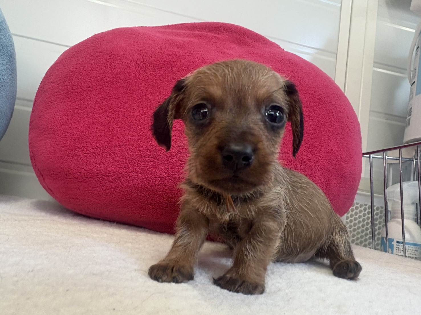ミニチュアワイヤーダックスフンドの子犬が産まれました。父、母犬ともにJKCチャンピオン。現在、2頭のご紹介です。