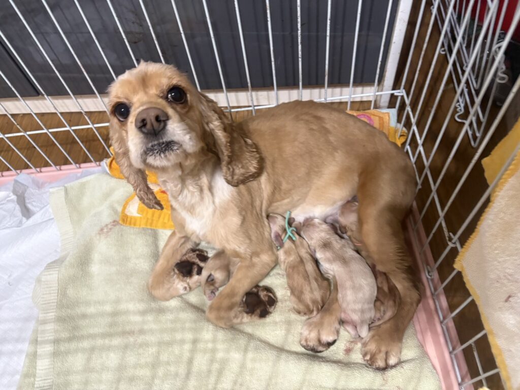 アメリカン・コッカー・スパニエルが出産予定です。