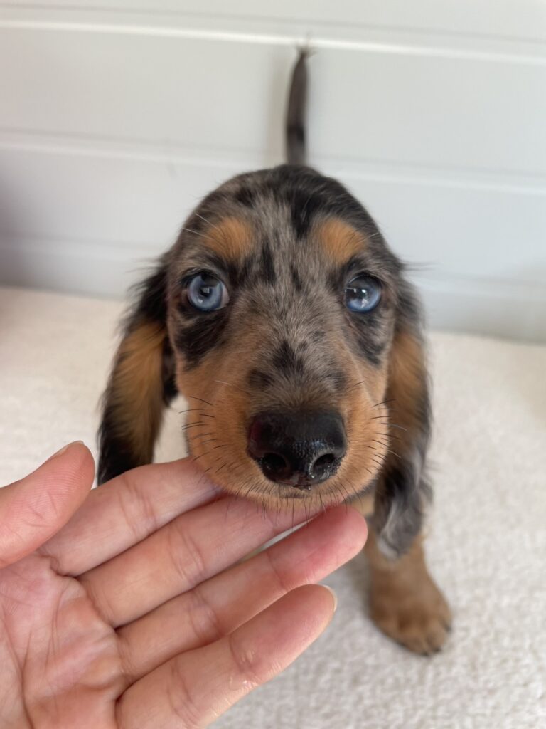 ミニチュアロングダックス:2025年04月30日生 2025年4月30日 最終更新日時 : 2025年11月27日 adm56778 価格:お問い合わせください ☆犬種ミニチュアロングダックス☆毛色と性別①(紹介終了)②男の子:シルバーダップル③(紹介終了)☆誕生日2025年4月30日☆血統書あり(JKC) ミニチュアロングダックスフンドの3兄妹です。価格についてはお問い合わせください。ご連絡をお待ちしております。 第5報:近影(2025年7月2日) 第4報:近影(2025年6月22日) 第3報:近影(2025年6月2日) 第2報:近影(2025年5月18日) 第1報:出産しました! 親犬情報 母犬 フレッシュ 父犬 モーツアルト 「ご案内中の子犬」一覧ページに戻る FacebookXCopy
