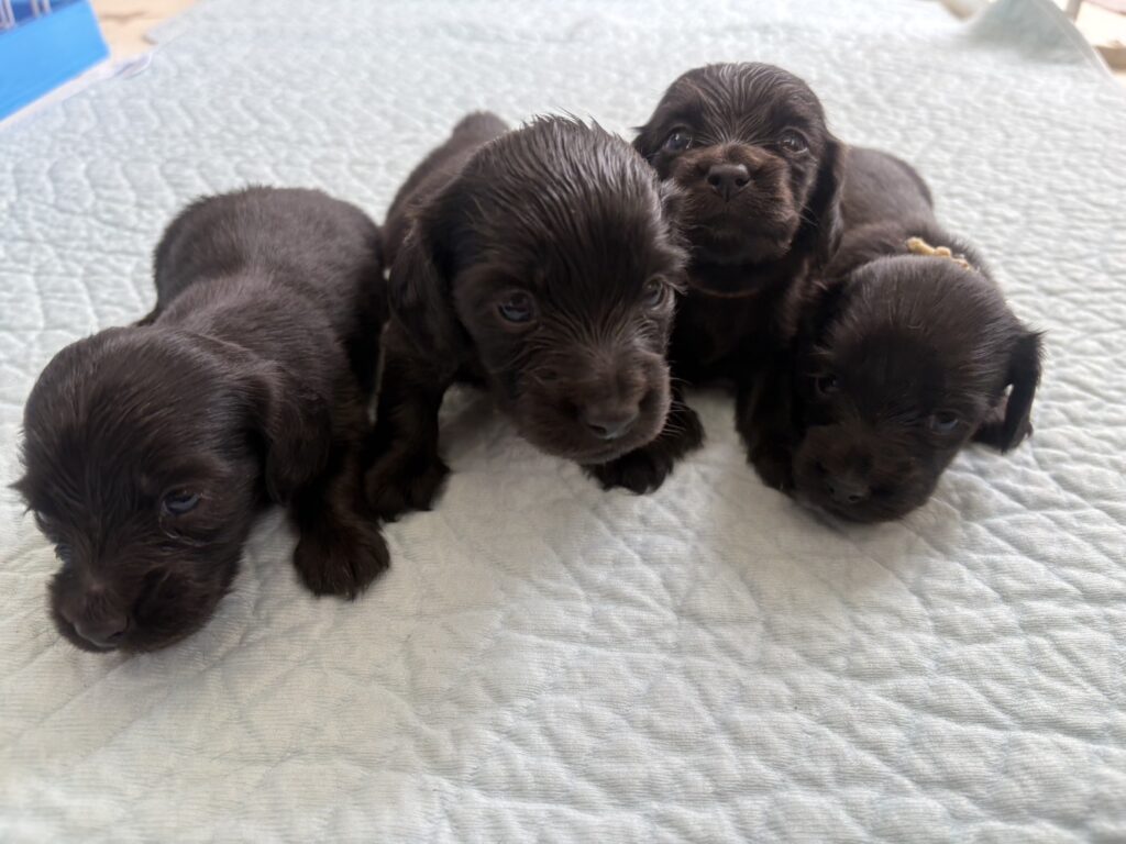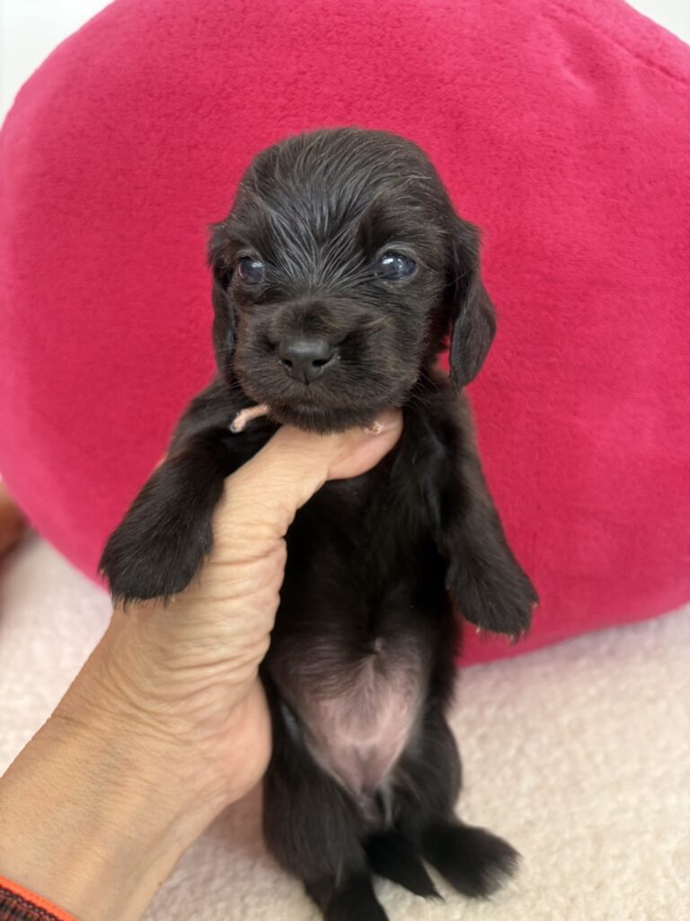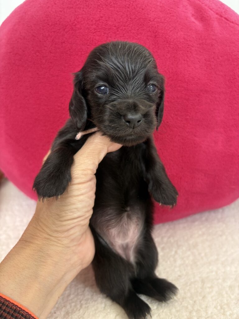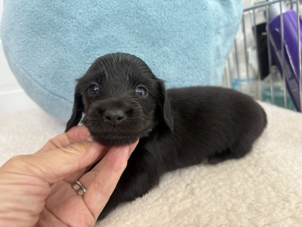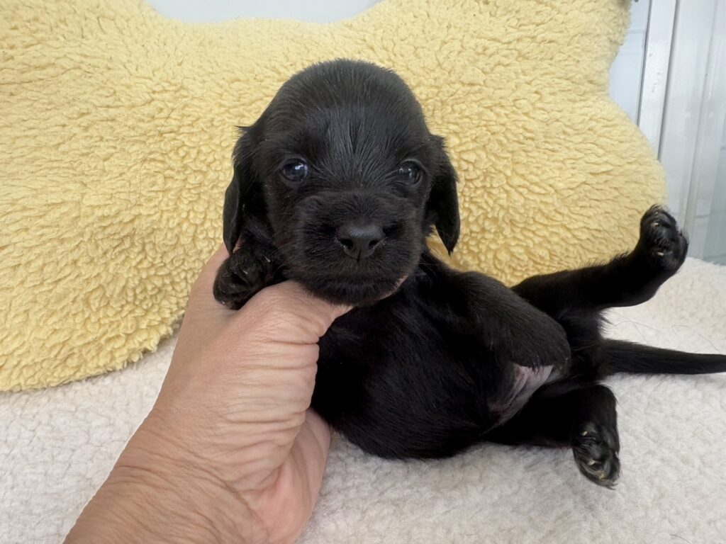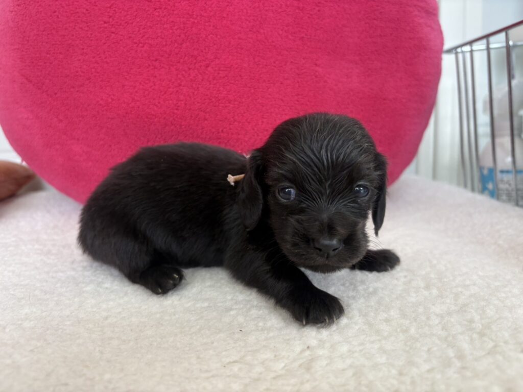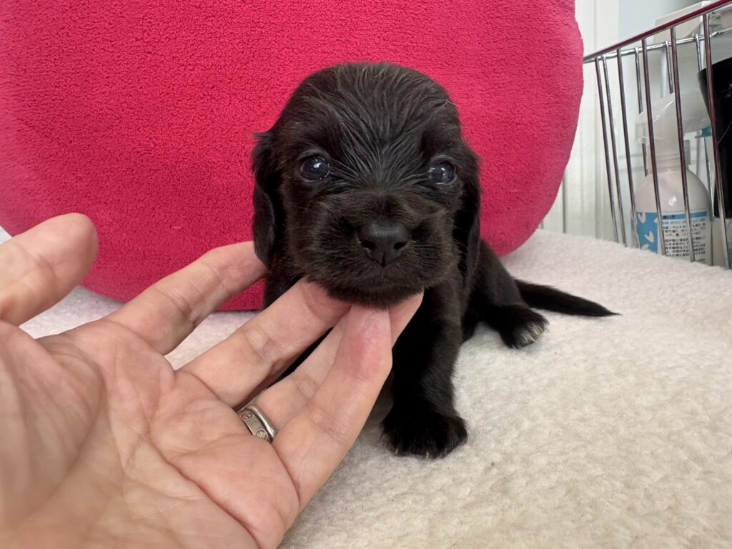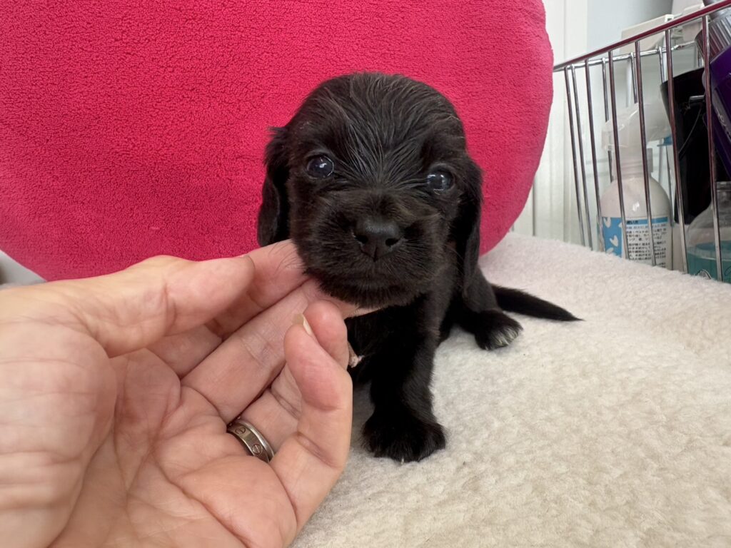 ミニチュアロングダックス:2025年04月30日生 2025年4月30日 最終更新日時 : 2025年11月27日 adm56778 価格:お問い合わせください ☆犬種ミニチュアロングダックス☆毛色と性別①(紹介終了)②(紹介終了)③女の子:ブラックソリッド④(紹介終了)☆誕生日2025年4月30日☆血統書あり(JKC) ミニチュアロングダックスフンドの4兄妹です。価格についてはお問い合わせください。ご連絡をお待ちしております。 第3報:近影(2025年6月10日) 第2報:近影(2025年5月23日) ①ブラックソリッド♂(ゴム無し) ②ブラックソリッド♀(青ゴム) ③ブラックソリッド♀(黄色ゴム) ④ブラックソリッド♀(ピンクゴム) 第1報:出産しました! 親犬情報 母犬 ベル 父犬 クルーズ 「ご案内中の子犬」一覧ページに戻る FacebookXCopy