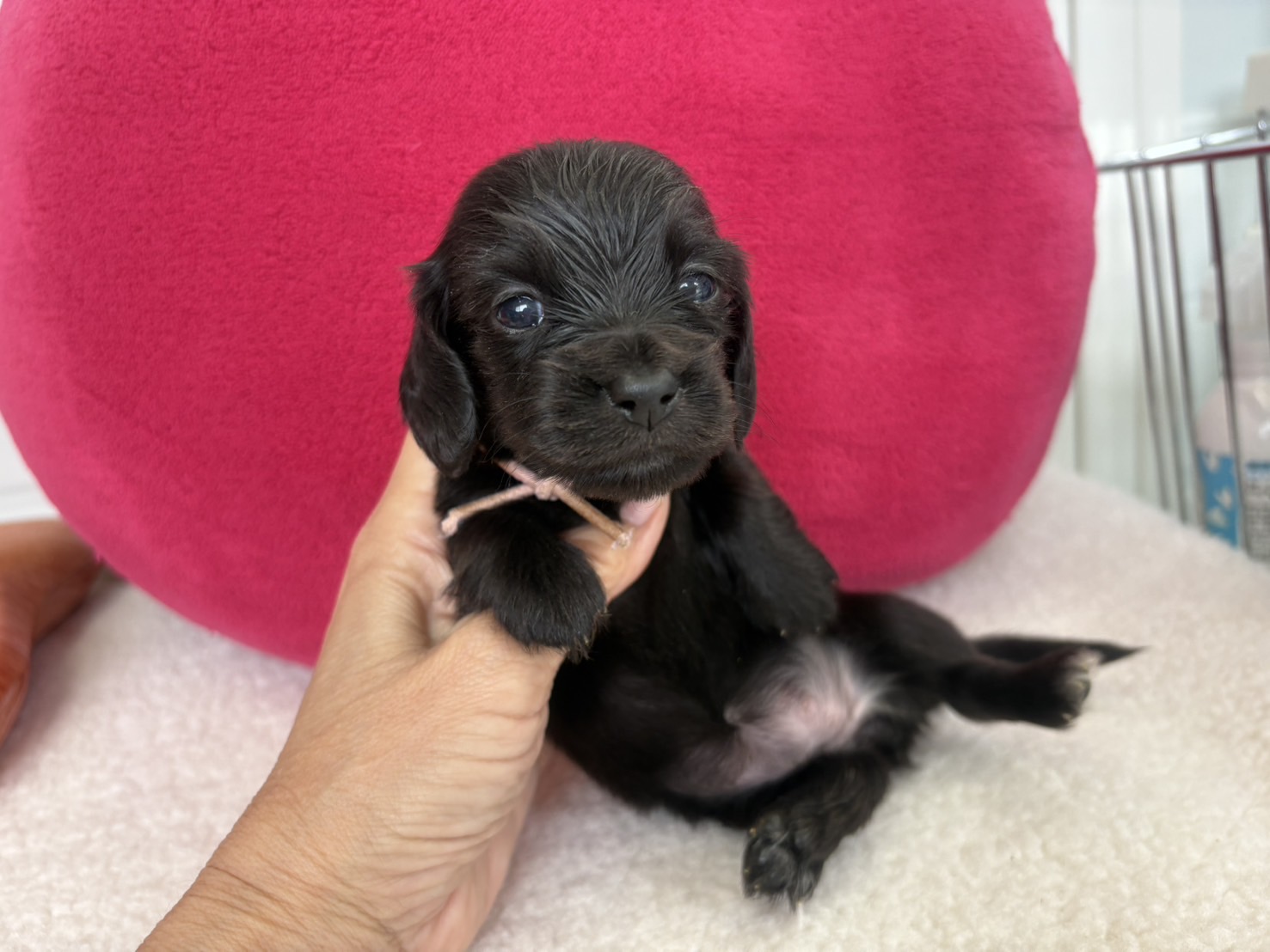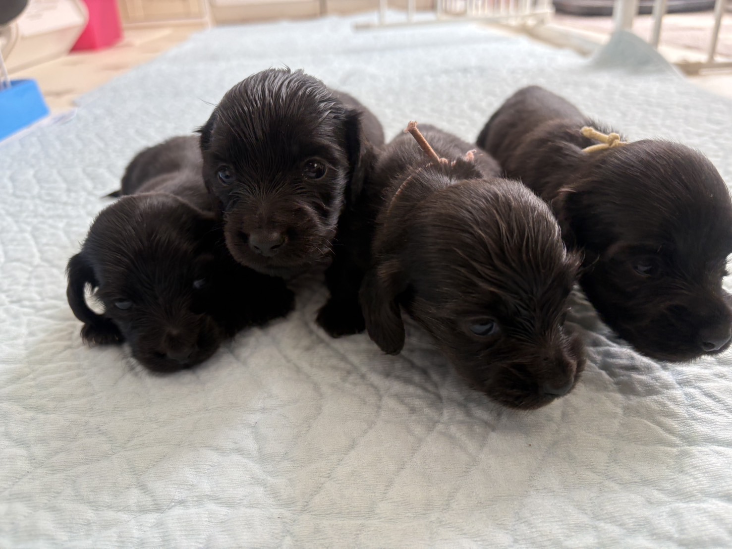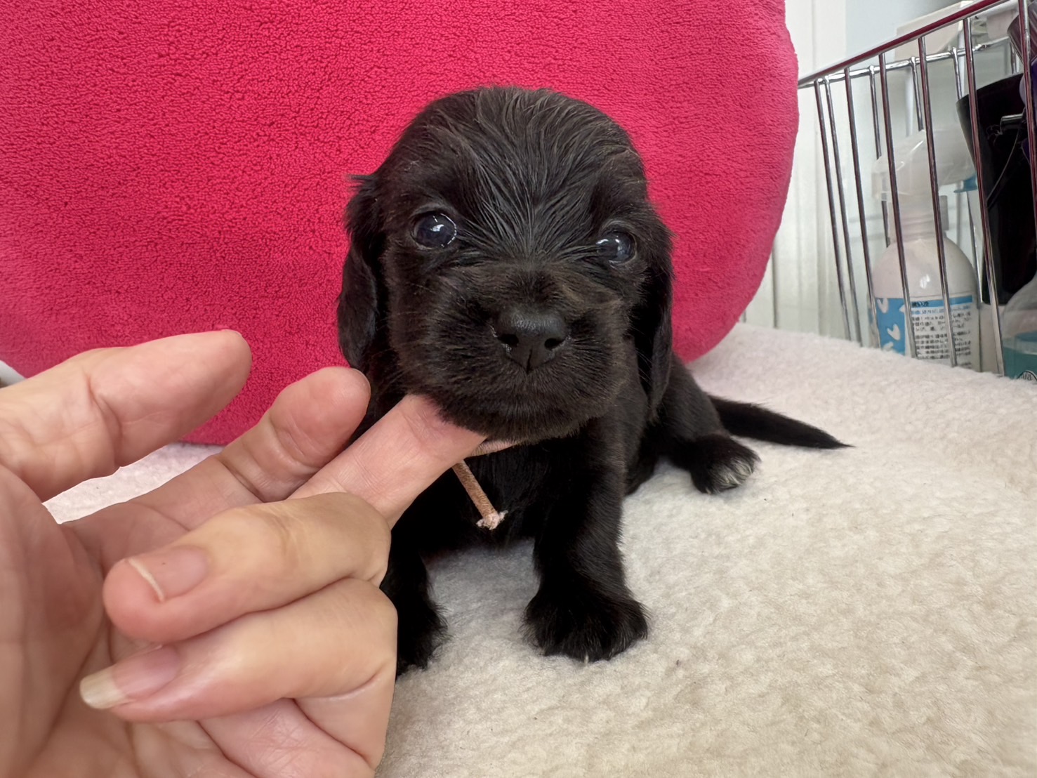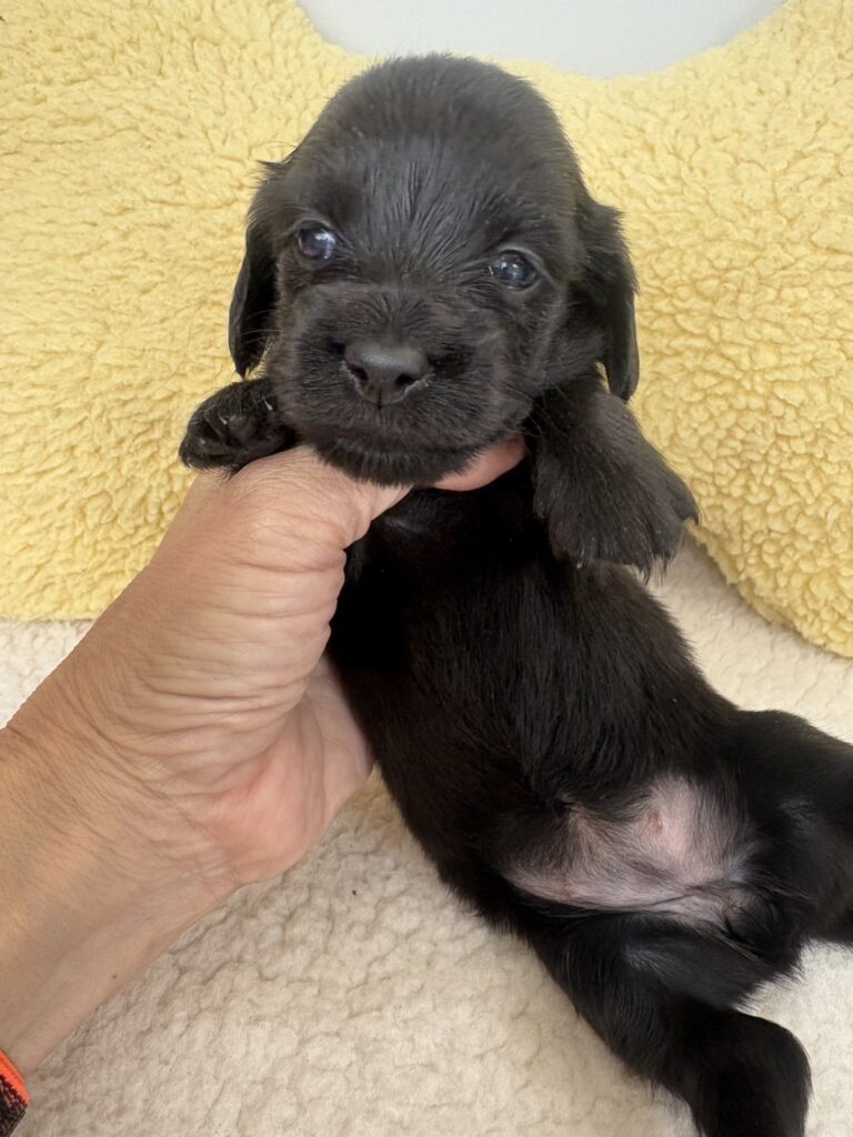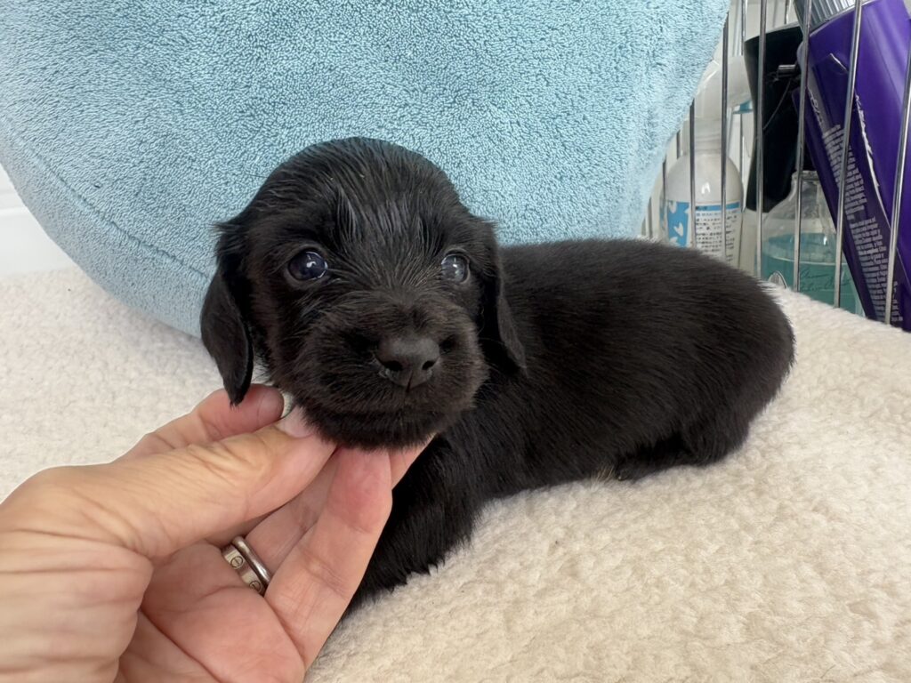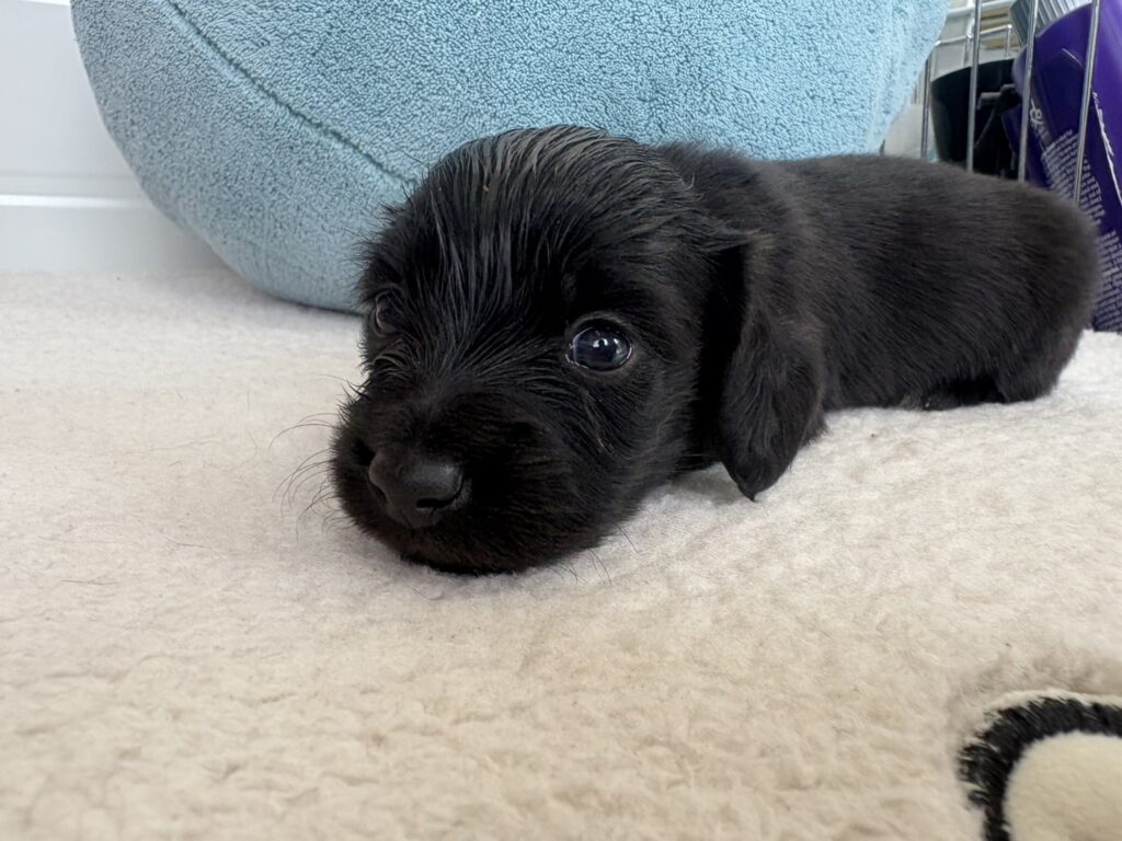 ミニチュアロングダックス:2025年04月30日生 2025年4月30日 最終更新日時 : 2025年11月27日 adm56778 価格:お問い合わせください ☆犬種ミニチュアロングダックス☆毛色と性別①(紹介終了)②(紹介終了)③女の子:ブラックソリッド④(紹介終了)☆誕生日2025年4月30日☆血統書あり(JKC) ミニチュアロングダックスフンドの4兄妹です。価格についてはお問い合わせください。ご連絡をお待ちしております。 第3報:近影(2025年6月10日) 第2報:近影(2025年5月23日) ①ブラックソリッド♂(ゴム無し) ②ブラックソリッド♀(青ゴム) ③ブラックソリッド♀(黄色ゴム) ④ブラックソリッド♀(ピンクゴム) 第1報:出産しました! 親犬情報 母犬 ベル 父犬 クルーズ 「ご案内中の子犬」一覧ページに戻る FacebookXCopy