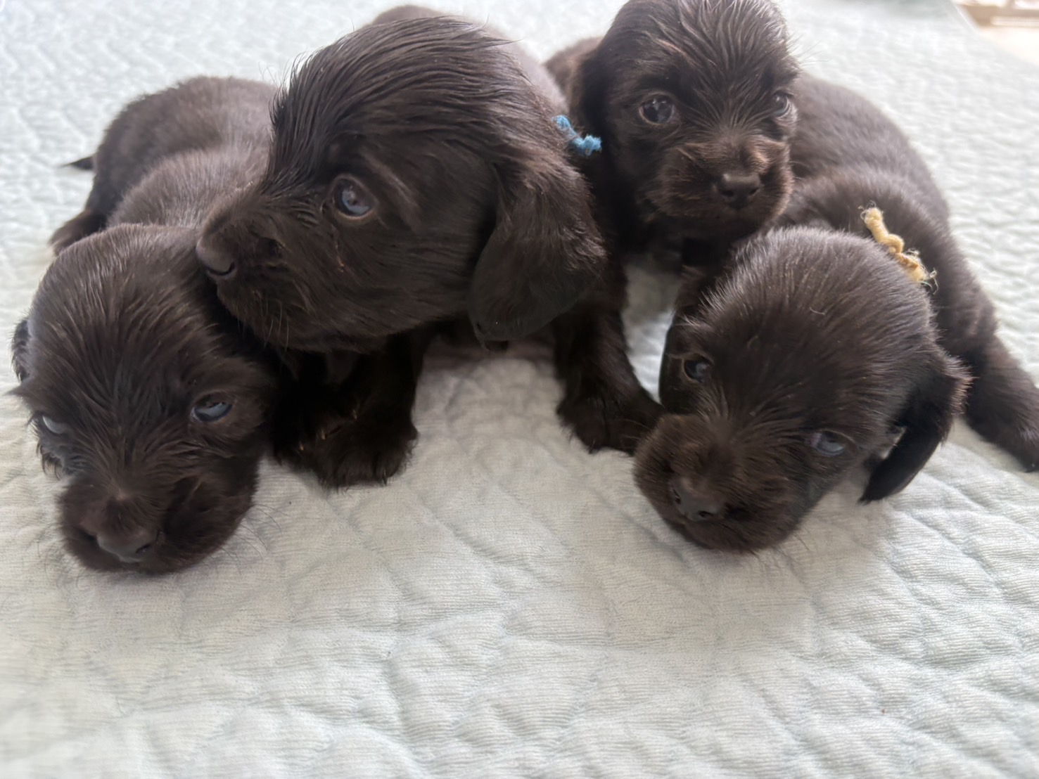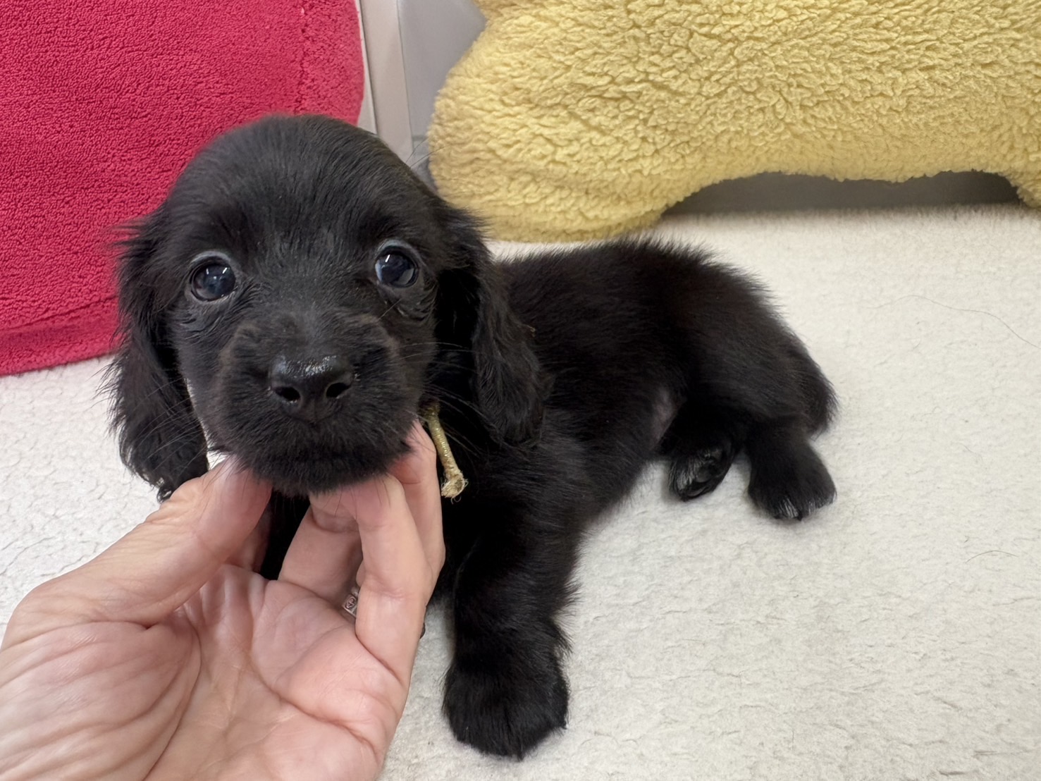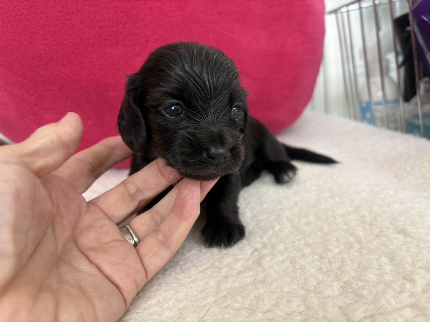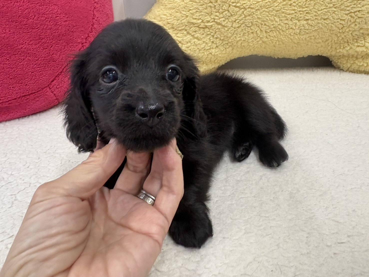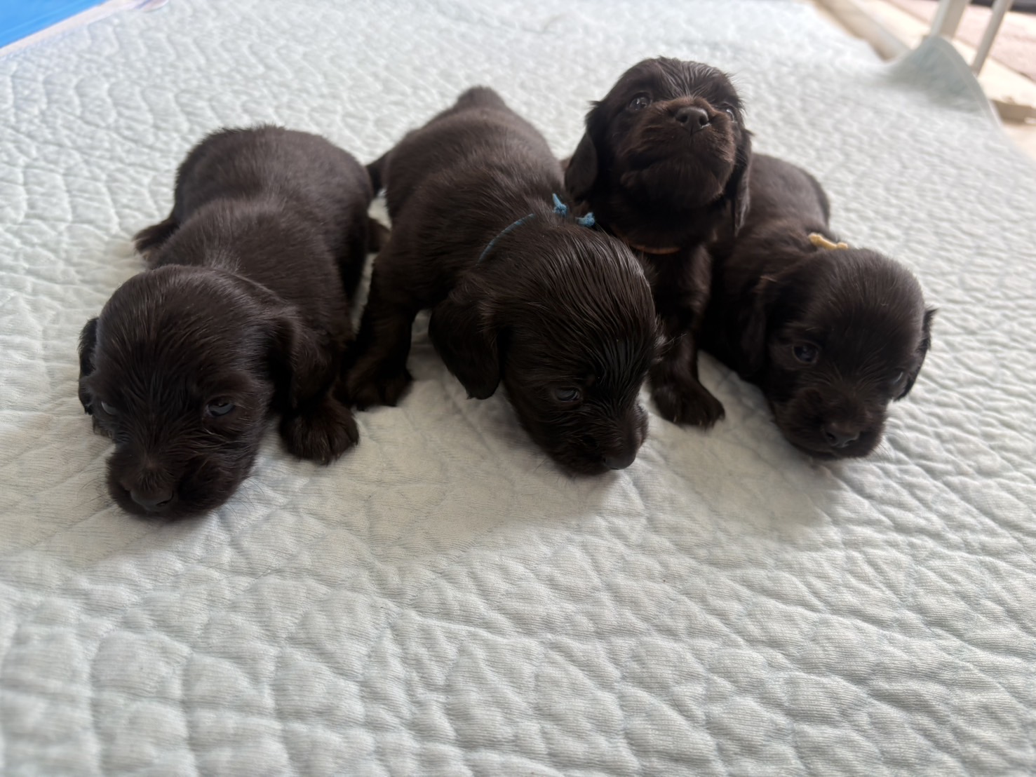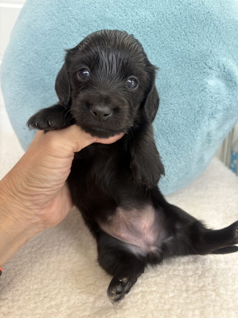 ミニチュアロングダックス:2025年04月30日生 2025年4月30日 最終更新日時 : 2025年11月27日 adm56778 価格:お問い合わせください ☆犬種ミニチュアロングダックス☆毛色と性別①(紹介終了)②(紹介終了)③女の子:ブラックソリッド④(紹介終了)☆誕生日2025年4月30日☆血統書あり(JKC) ミニチュアロングダックスフンドの4兄妹です。価格についてはお問い合わせください。ご連絡をお待ちしております。 第3報:近影(2025年6月10日) 第2報:近影(2025年5月23日) ①ブラックソリッド♂(ゴム無し) ②ブラックソリッド♀(青ゴム) ③ブラックソリッド♀(黄色ゴム) ④ブラックソリッド♀(ピンクゴム) 第1報:出産しました! 親犬情報 母犬 ベル 父犬 クルーズ 「ご案内中の子犬」一覧ページに戻る FacebookXCopy