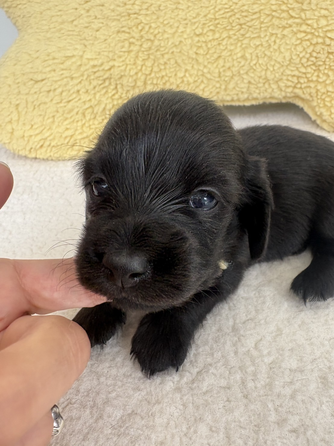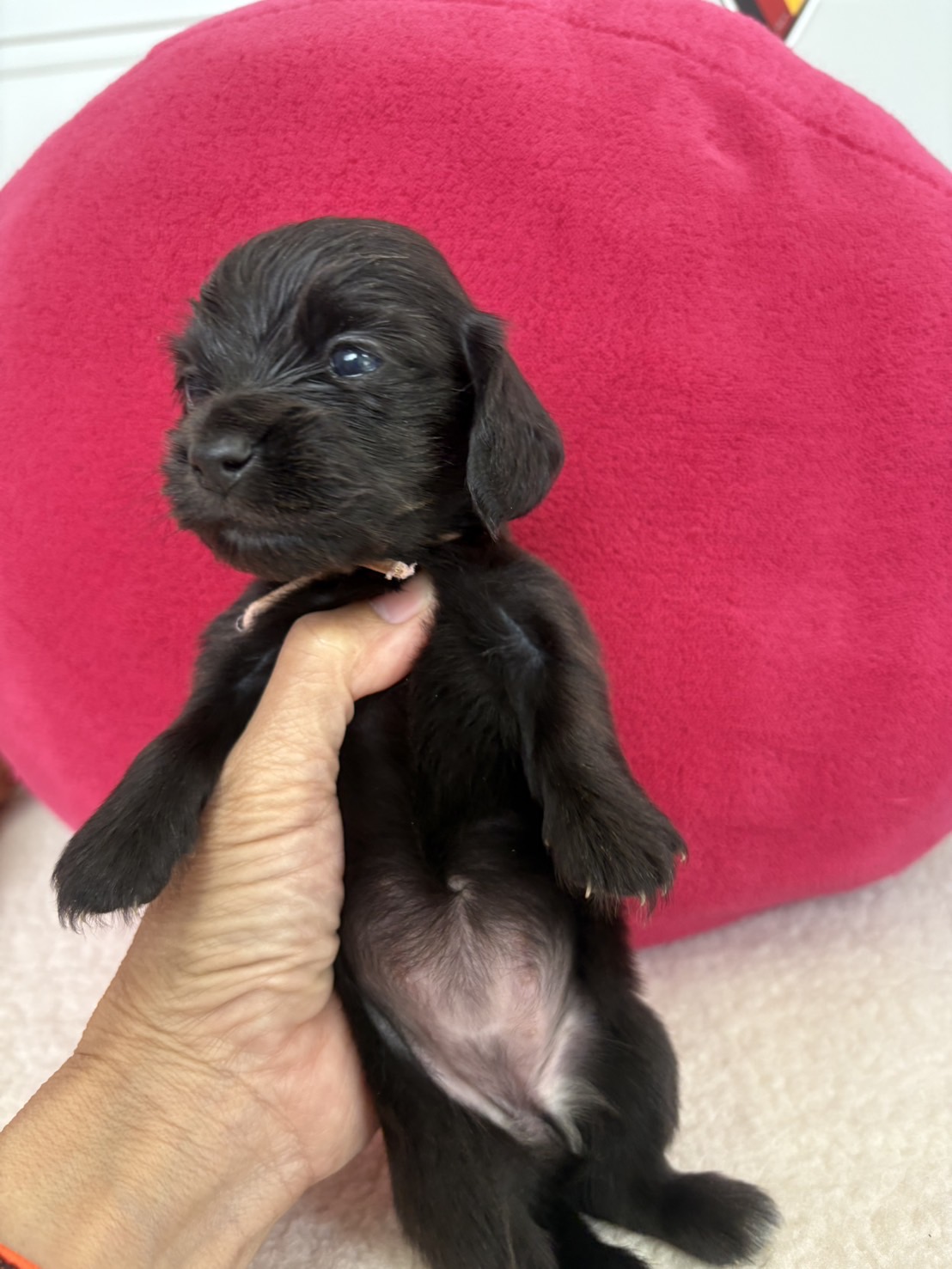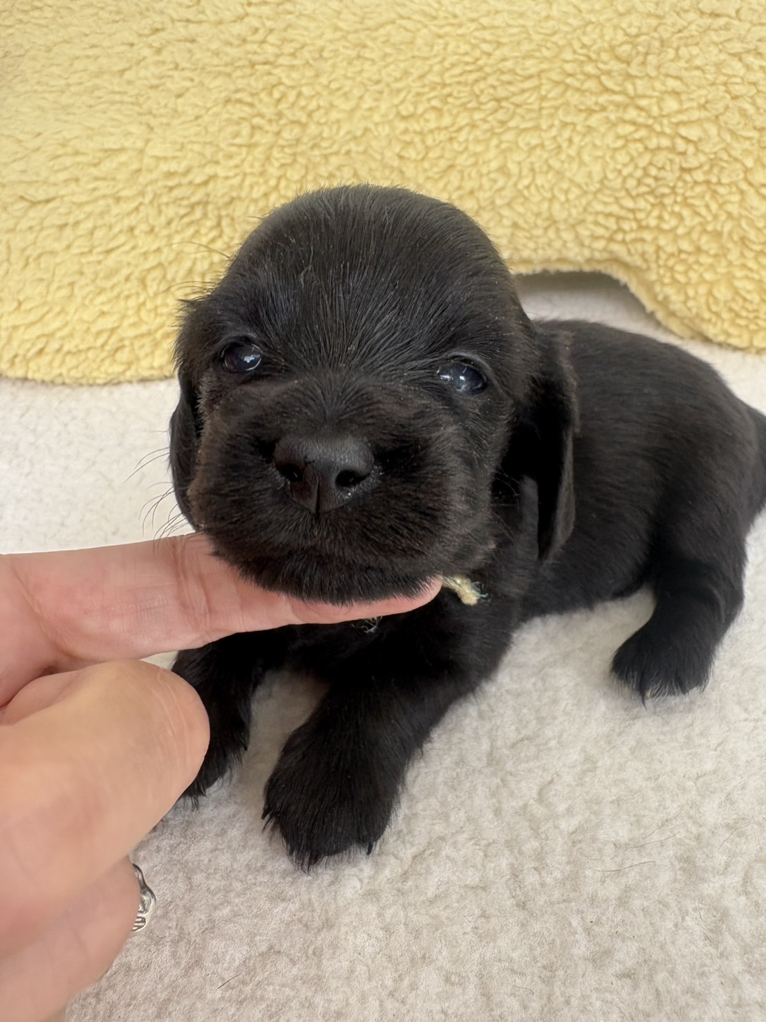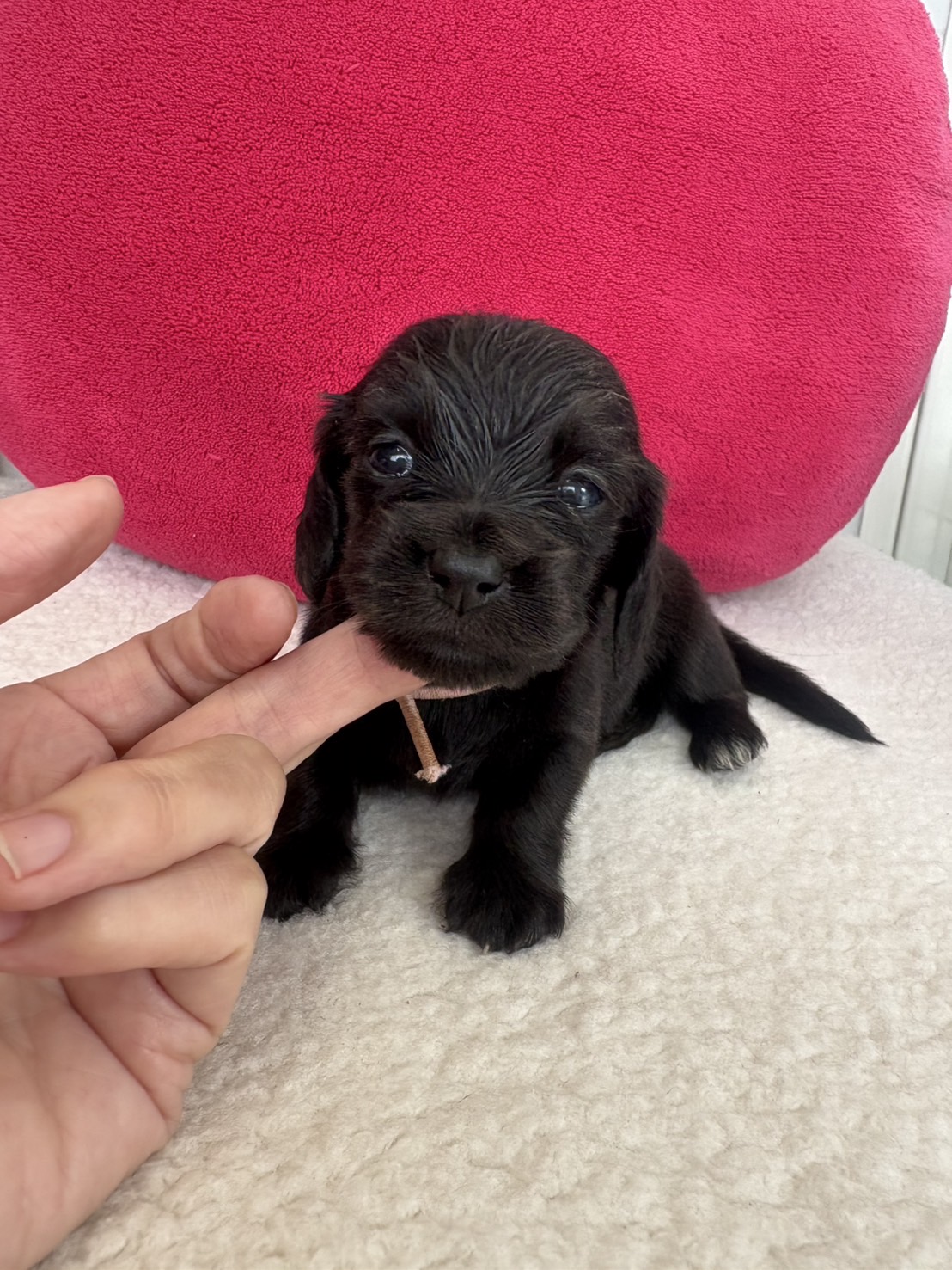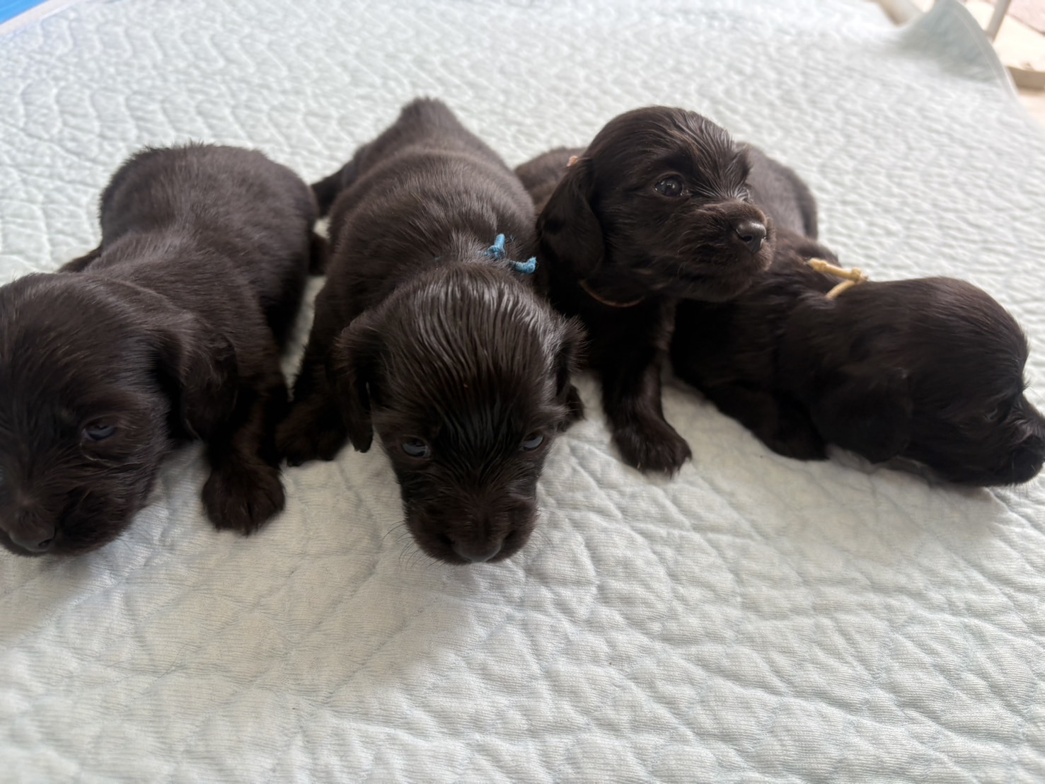 ミニチュアロングダックス:2025年04月30日生 2025年4月30日 最終更新日時 : 2025年11月27日 adm56778 価格:お問い合わせください ☆犬種ミニチュアロングダックス☆毛色と性別①(紹介終了)②(紹介終了)③女の子:ブラックソリッド④(紹介終了)☆誕生日2025年4月30日☆血統書あり(JKC) ミニチュアロングダックスフンドの4兄妹です。価格についてはお問い合わせください。ご連絡をお待ちしております。 第3報:近影(2025年6月10日) 第2報:近影(2025年5月23日) ①ブラックソリッド♂(ゴム無し) ②ブラックソリッド♀(青ゴム) ③ブラックソリッド♀(黄色ゴム) ④ブラックソリッド♀(ピンクゴム) 第1報:出産しました! 親犬情報 母犬 ベル 父犬 クルーズ 「ご案内中の子犬」一覧ページに戻る FacebookXCopy