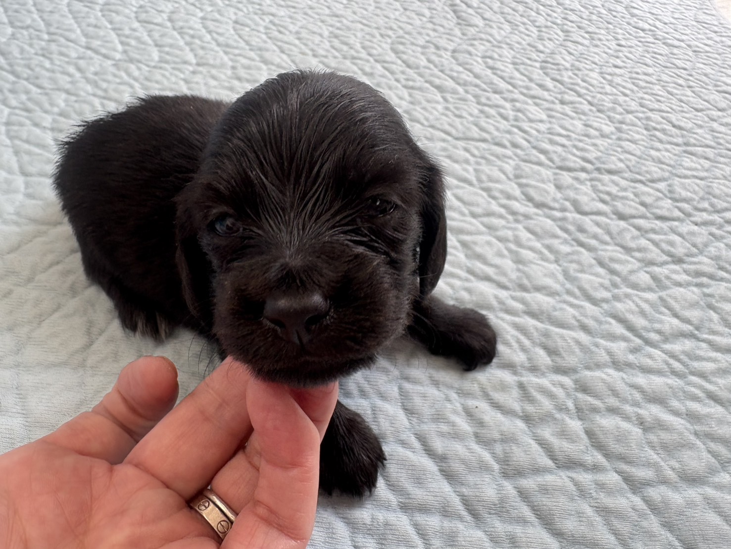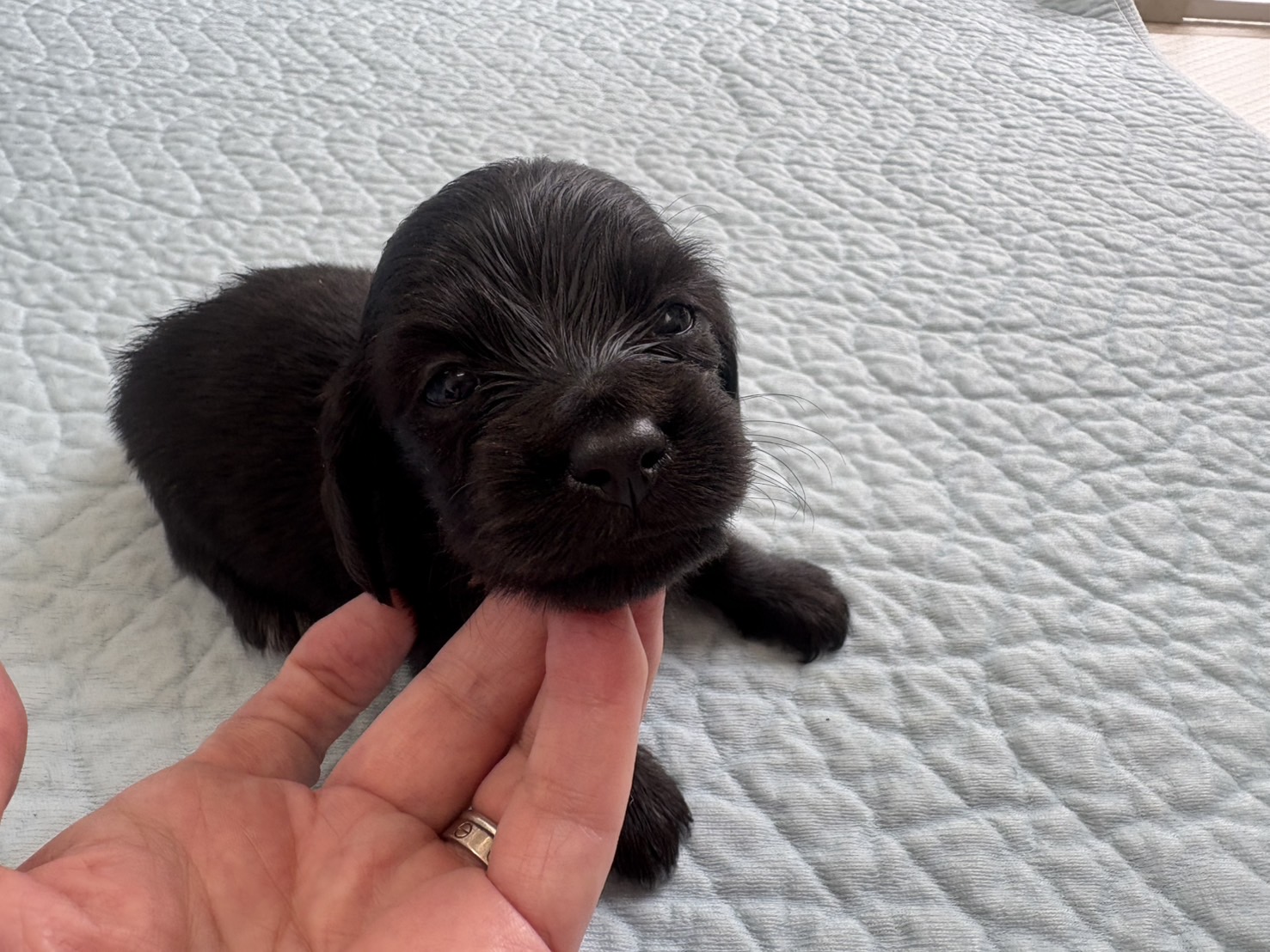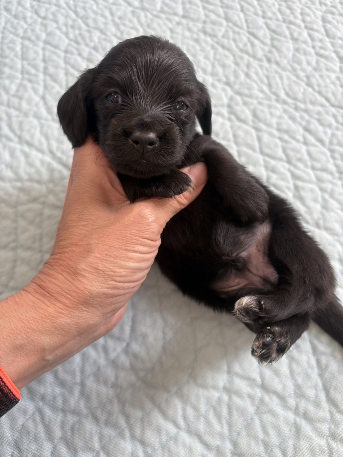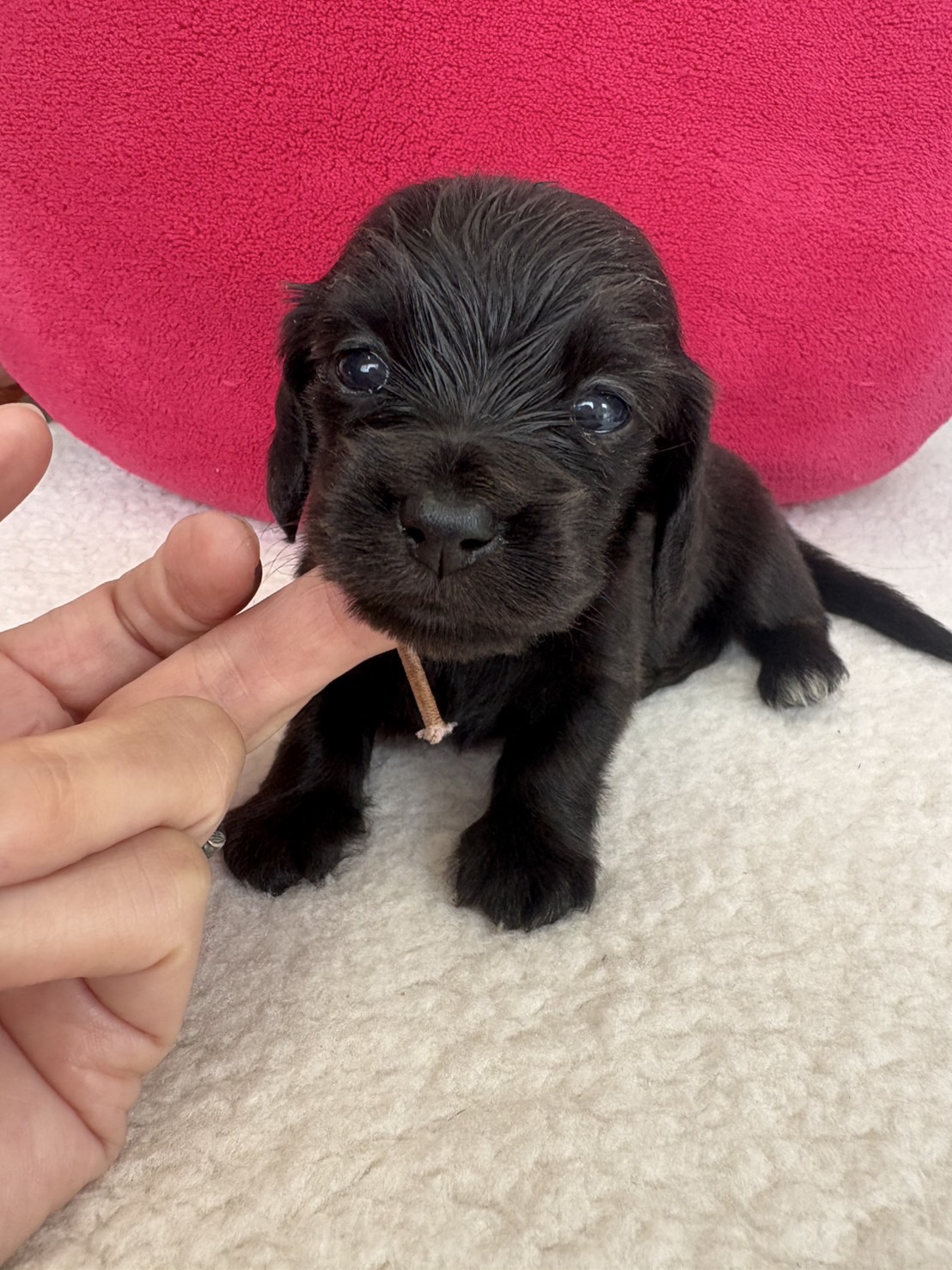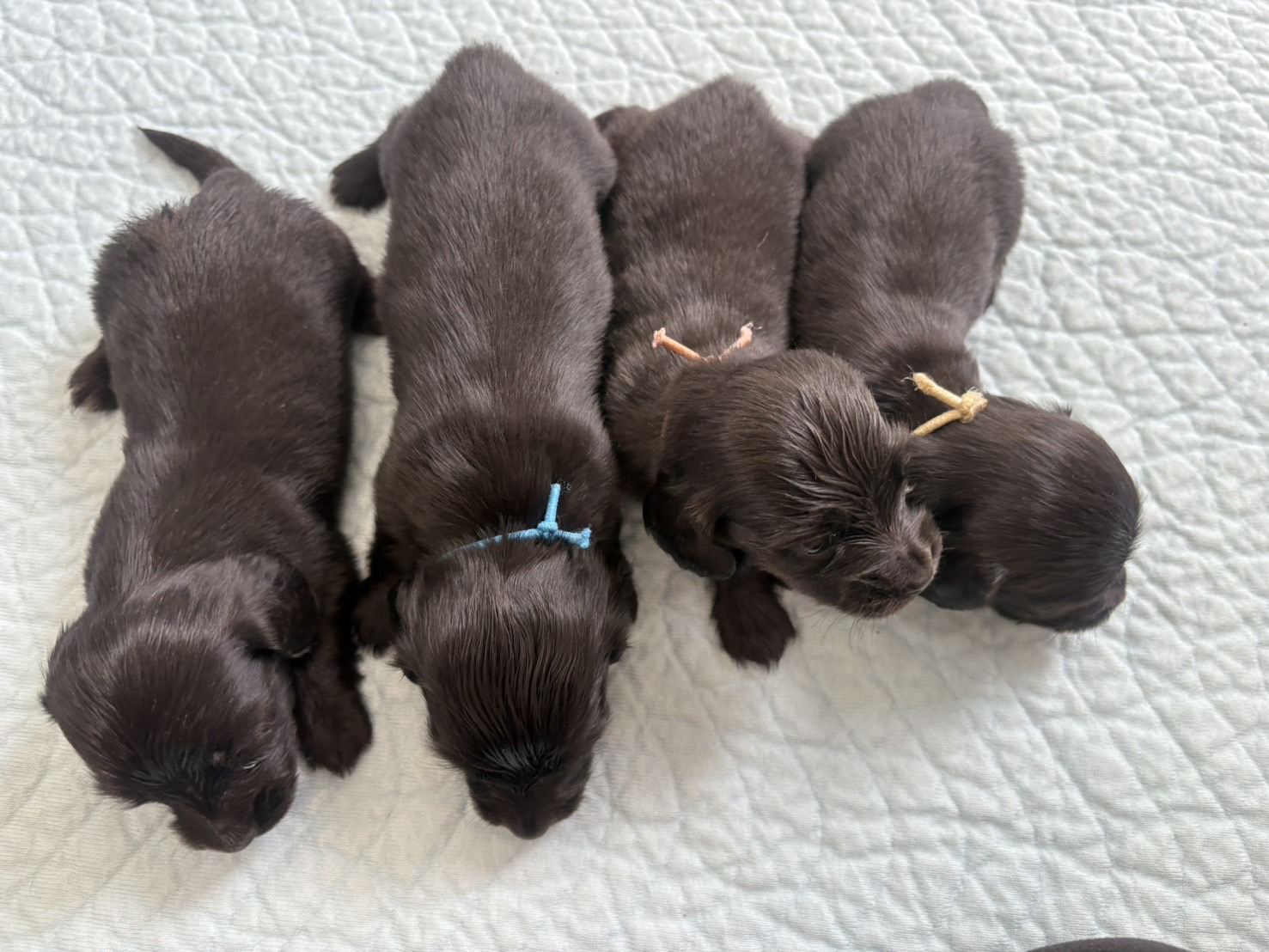 ミニチュアロングダックス:2025年04月30日生 2025年4月30日 最終更新日時 : 2025年11月27日 adm56778 価格:お問い合わせください ☆犬種ミニチュアロングダックス☆毛色と性別①(紹介終了)②(紹介終了)③女の子:ブラックソリッド④(紹介終了)☆誕生日2025年4月30日☆血統書あり(JKC) ミニチュアロングダックスフンドの4兄妹です。価格についてはお問い合わせください。ご連絡をお待ちしております。 第3報:近影(2025年6月10日) 第2報:近影(2025年5月23日) ①ブラックソリッド♂(ゴム無し) ②ブラックソリッド♀(青ゴム) ③ブラックソリッド♀(黄色ゴム) ④ブラックソリッド♀(ピンクゴム) 第1報:出産しました! 親犬情報 母犬 ベル 父犬 クルーズ 「ご案内中の子犬」一覧ページに戻る FacebookXCopy