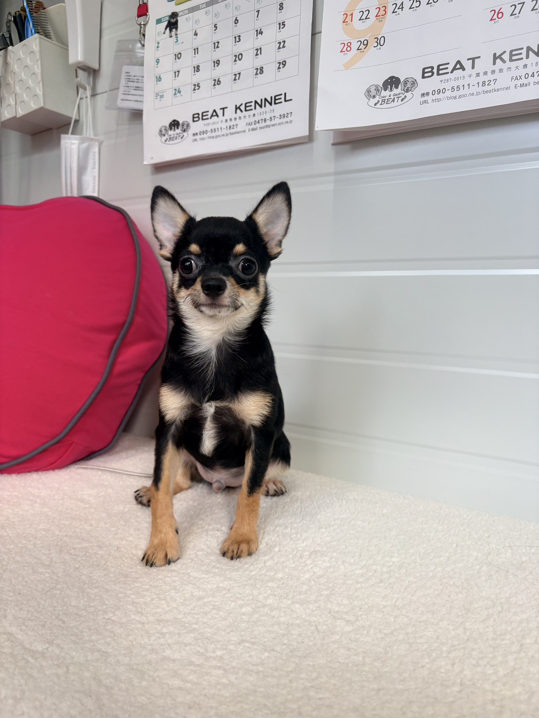 ロングコートチワワ TIARA CRYSTAL JP CACAO (ティアラクリスタル ジェイピー カカオ) 父:BLUE RIBBON STYLE JP'S A.R APOLLO 母:TISRS CRYSTAL JP MILLI 毛色:チョコレート&タン 呼び名:カカオ BEAT KENNEL 在舎犬 交配のお問い合わせは beat@green.ocn.ne.jp をコピペで送信先に貼り付けてください。 又は左サイドバーの『メッセージを送る』から。 携帯:090-5511-1827 ライン↓ ラインぜひ登録してください。お友達登録後トーク画面からお問い合わせしていただけます。