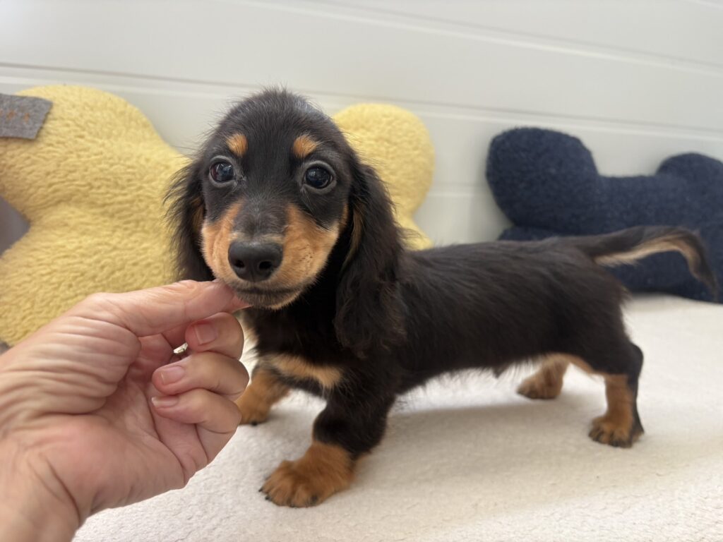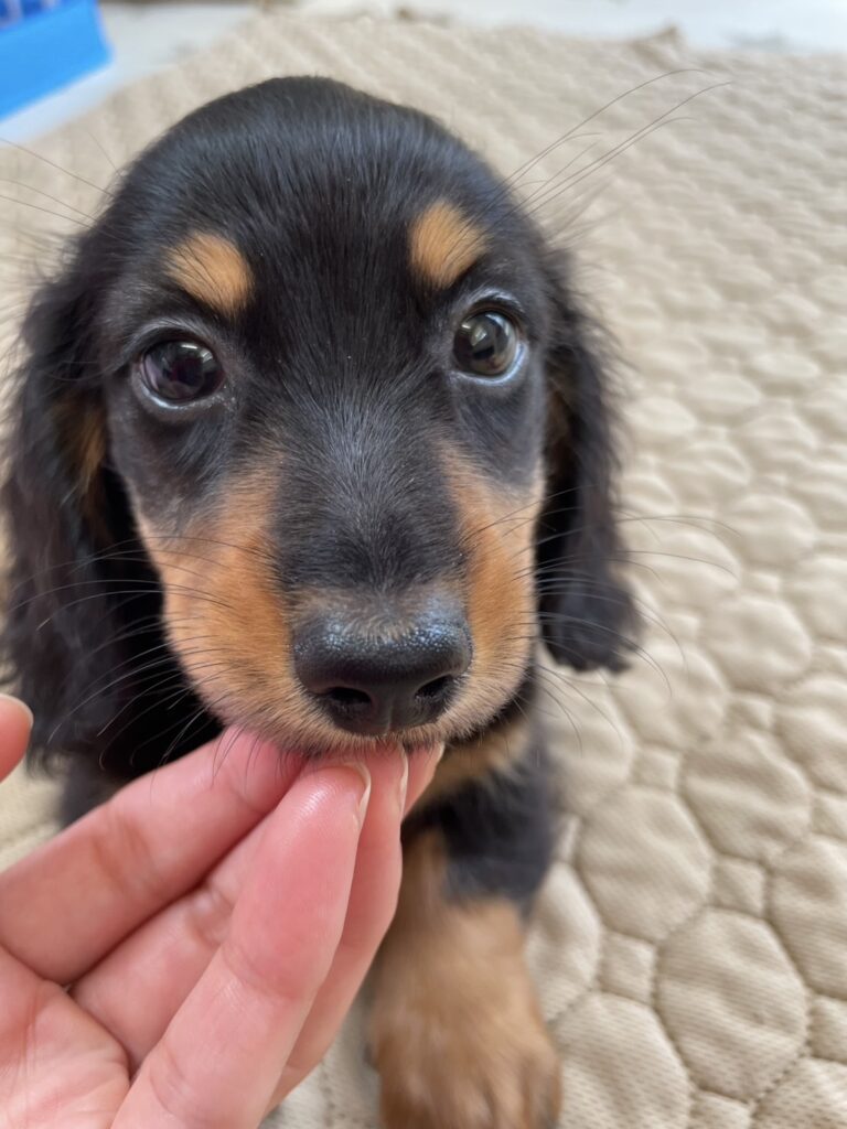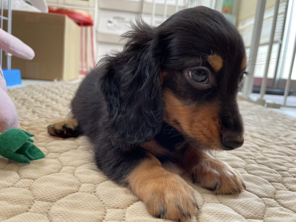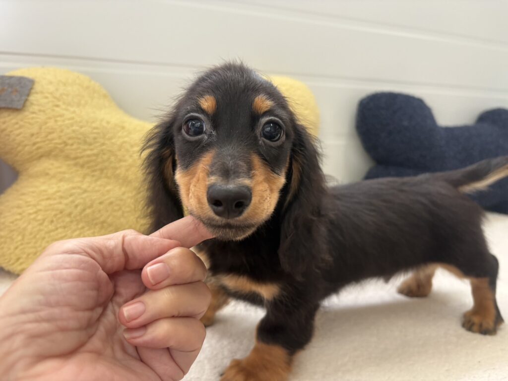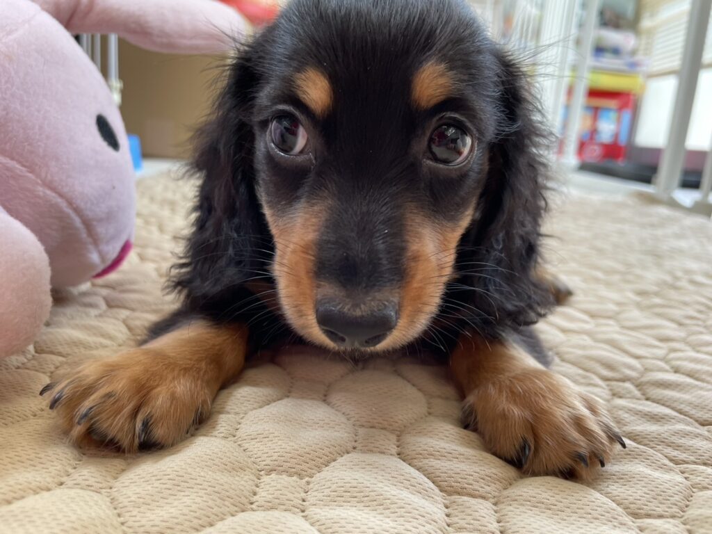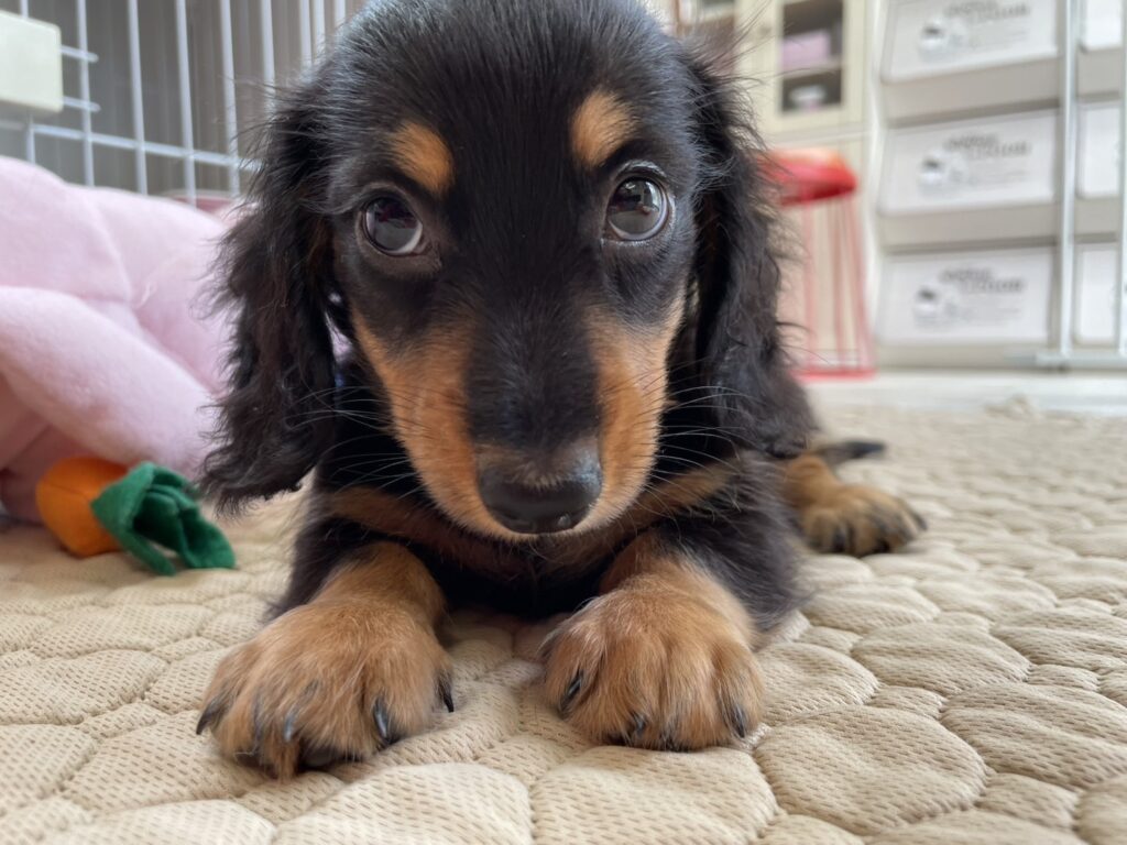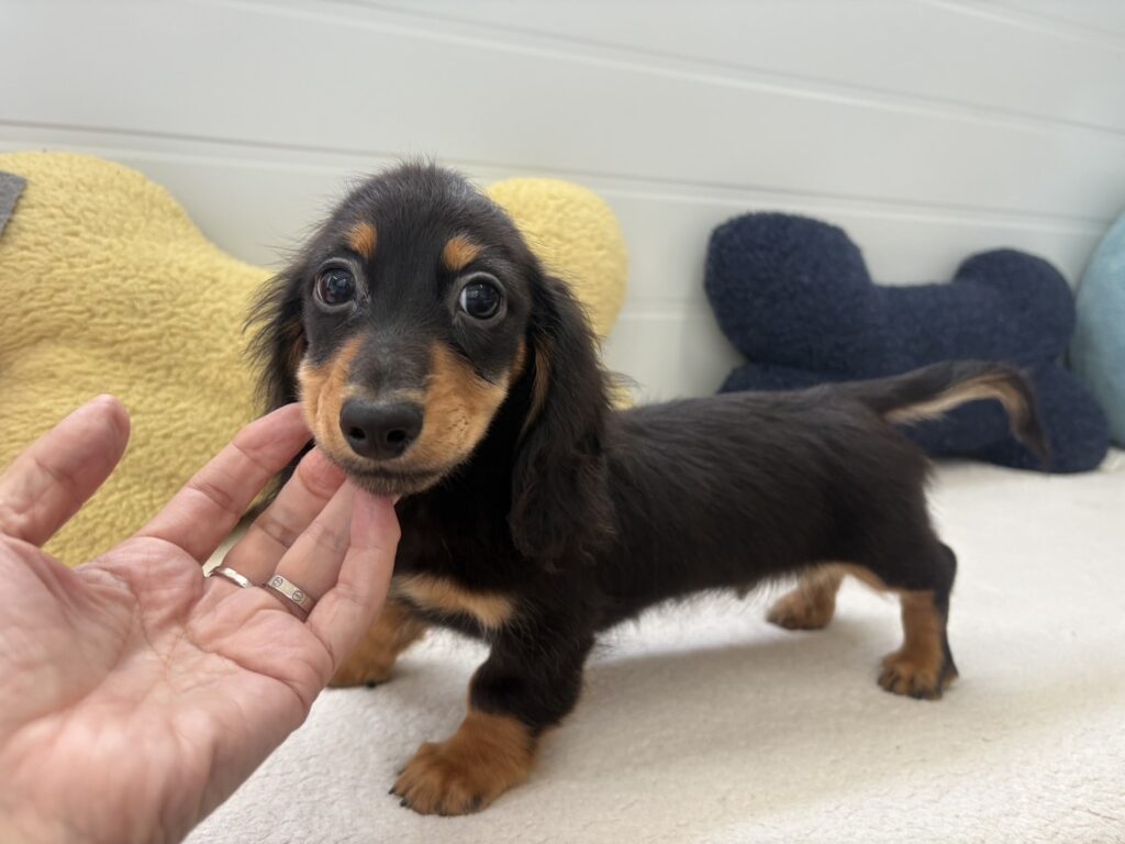カニンヘンロングダックスフンド BEAT JP'S NIKO NIKO NICOL'N (ビートジェイピーズ ニコ ニコ ニコルン) 父:他犬舎様ご愛犬 マルコ 母:JKCチャンピオン ニキ 毛色:ブラックソリッド 呼び名:にこるん 【ビートケンネル在舎犬】 交配のお問い合わせは↓beat@green.ocn.ne.jp をコピペで送信先に貼り付けてください。 又は左サイドバーの『メッセージを送る』からか公式LINEからもお問い合わせ承ります。 携帯:090-5511-1827(i-phone)