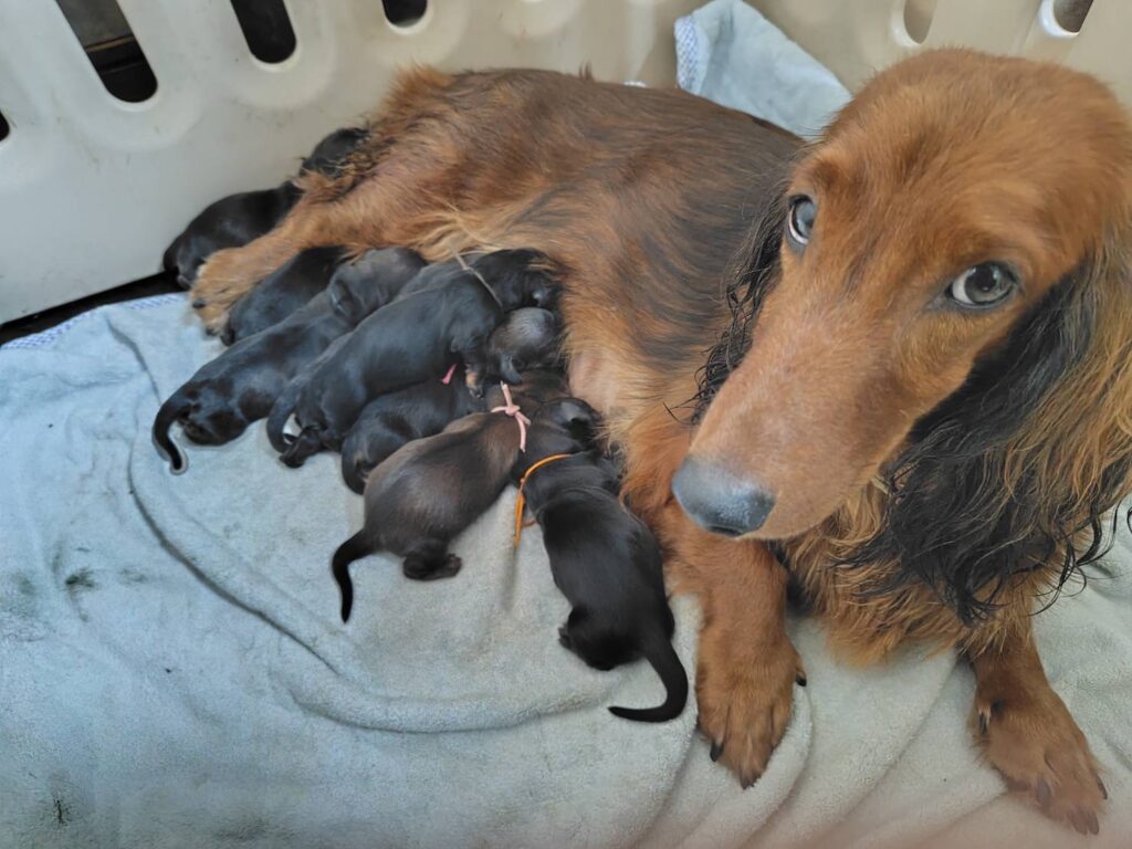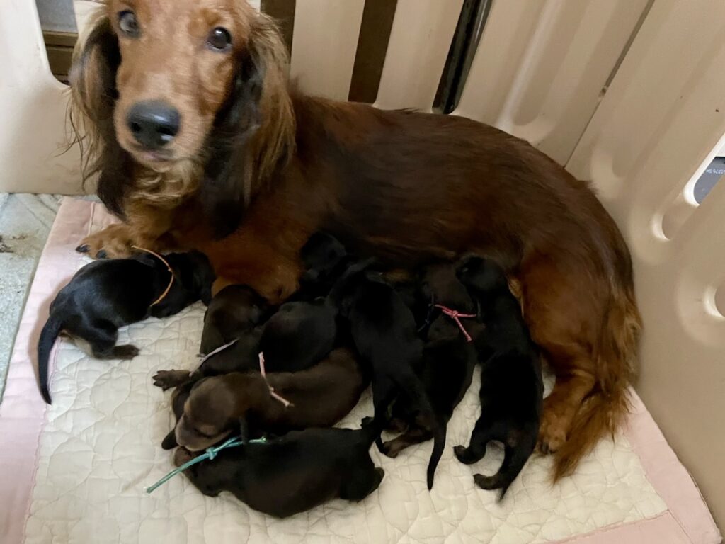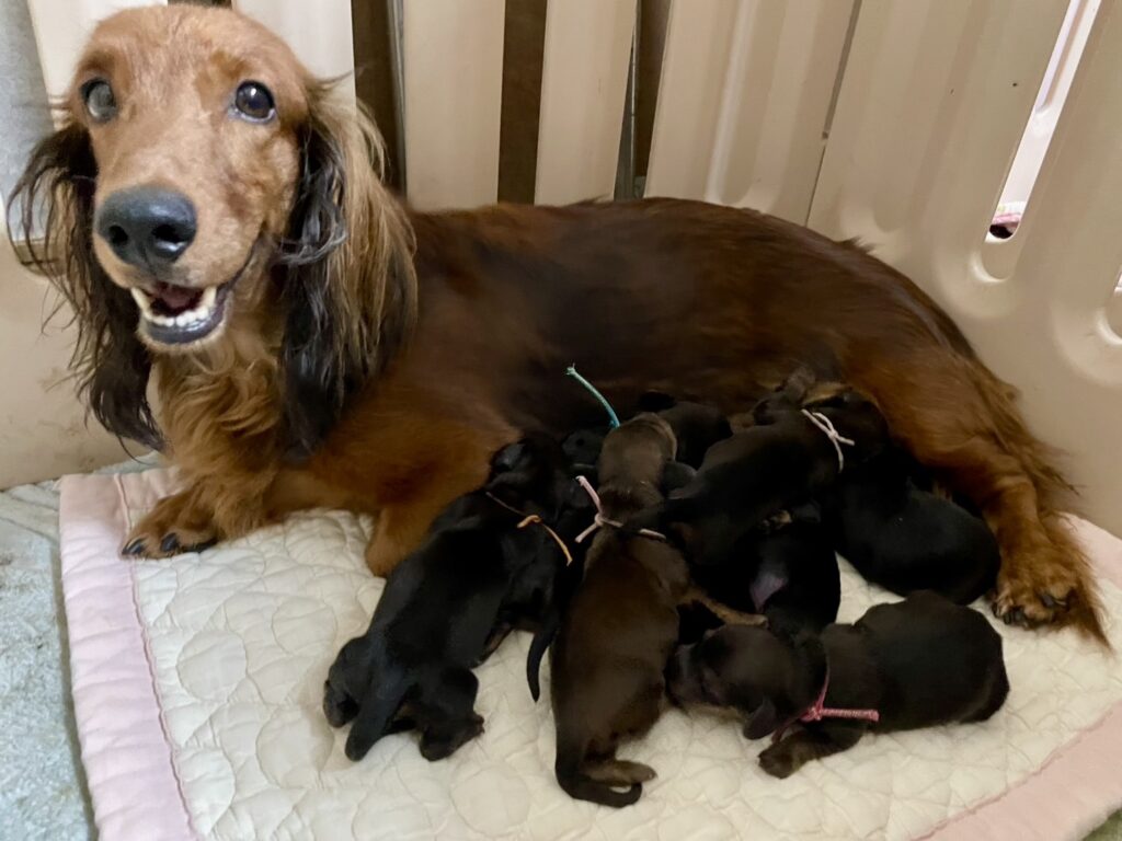 🆙 スタンダードロングダックスフンド:2025年09月26日生(5頭をご紹介中) 2025年9月26日 最終更新日時 : 2025年10月2日 admshu 価格:お問い合わせください ★犬種スタンダードロングダックスフンド★性別と毛色①ブラックタン♂(紹介終了)②レッド♂③レッド♂④ブラックタン♀(紹介終了)⑤ブラックタン♀(紹介終了)⑥レッド♀⑦レッド♀⑧レッド♀★誕生日2025年9月26日★血統書あり(JKC) スタンダードロングダックスフンドの子犬のご紹介です。価格についてはお問い合わせください。ご連絡をお待ちしております。 母犬 🏅JKCチャンピオン直娘 あっこ 父犬🏅JKCチャンピオン 他犬舎様JKCチャンピオン犬 第2報:近影(2025年10月2日) 第1報:出産しました! 「ご案内中の子犬」一覧ページに戻る FacebookXCopy