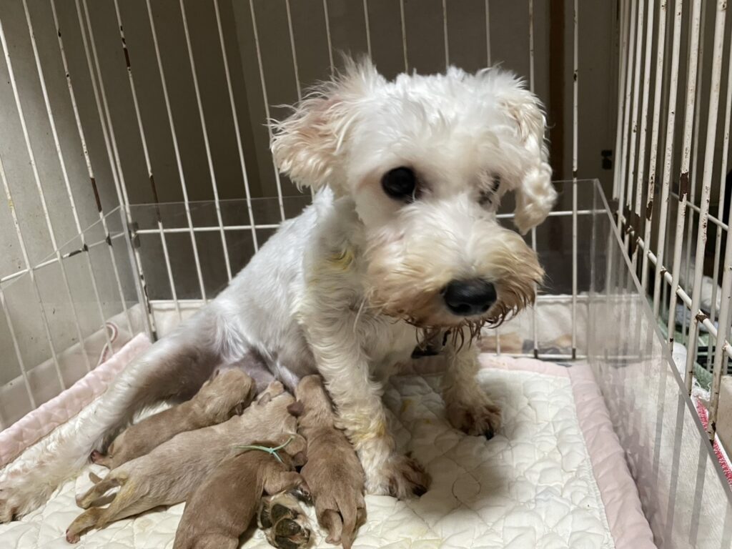 🆙 シュナプー(Mシュナウザー✖️トイプードル):2025年10月25日生(4頭をご紹介中) 2025年11月5日 最終更新日時 : 2025年11月18日 admshu 価格:お問い合わせください ★犬種シュナプー(Mシュナウザー✖️トイプードル)★性別と毛色①♂②♀③♀④♀レッド・アプリコット系(毛色経過観察中)★誕生日2025年10月25日★血統書あり(JKC) シュナプー(Mシュナウザー✖️トイプードル)の子犬のご紹介です。価格についてはお問い合わせください。ご連絡をお待ちしております。 母犬 ジャスミン 父犬 ジョン 第2報:近影(2025年11月18日) ①男の子 ②女の子 ③女の子 ④女の子 第1報:出産しました! 「ご案内中の子犬」一覧ページに戻る FacebookXCopy