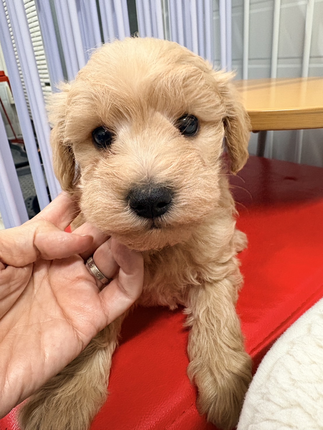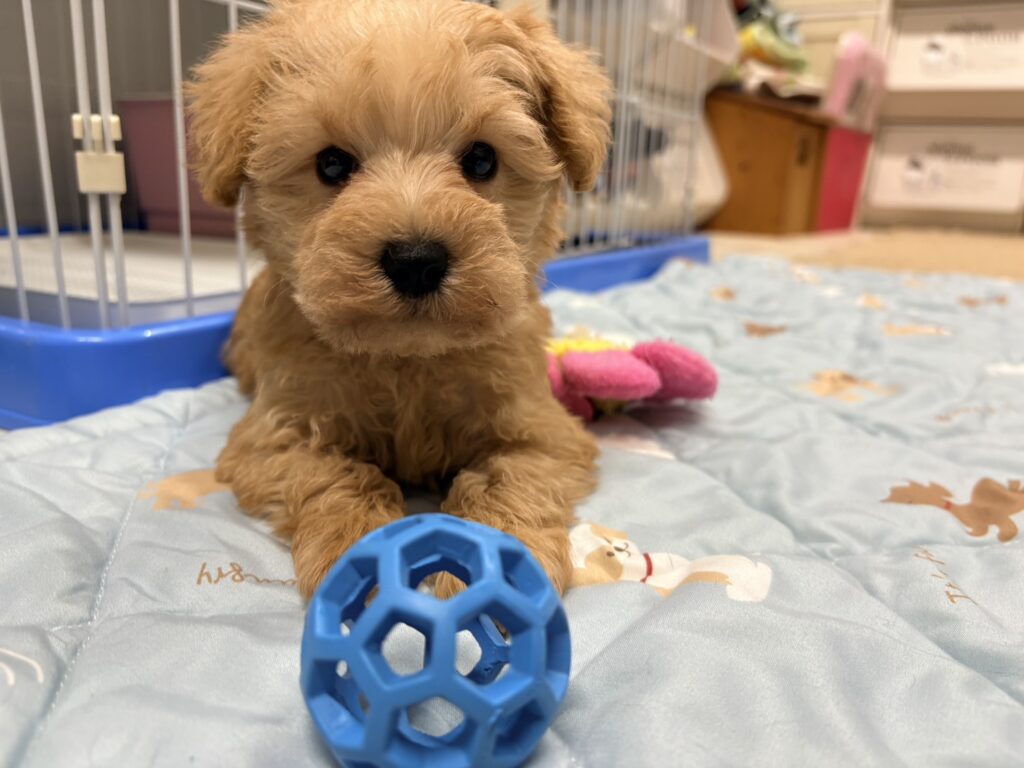 | ★性別と毛色 | ①アプリコット♂(紹介終了) ②アプリコット♀(紹介終了) ③クリーム♀(紹介終了) ④アプリコット♀ |