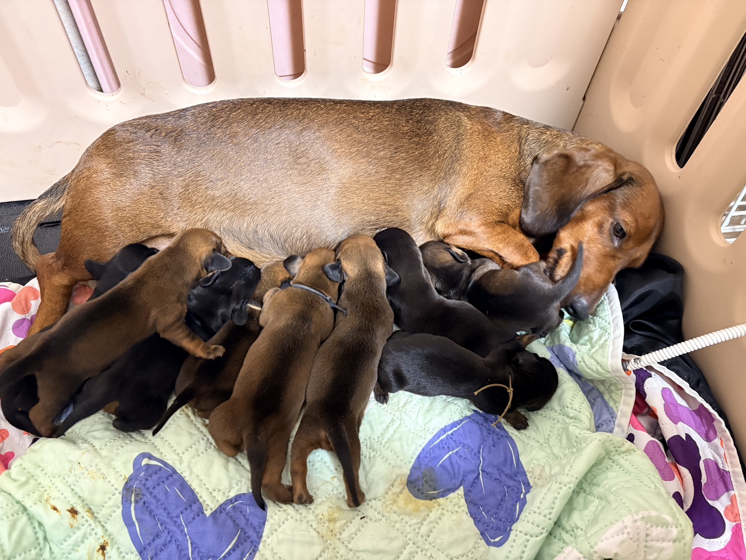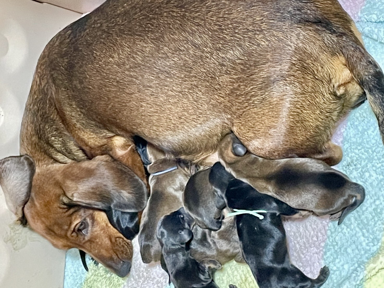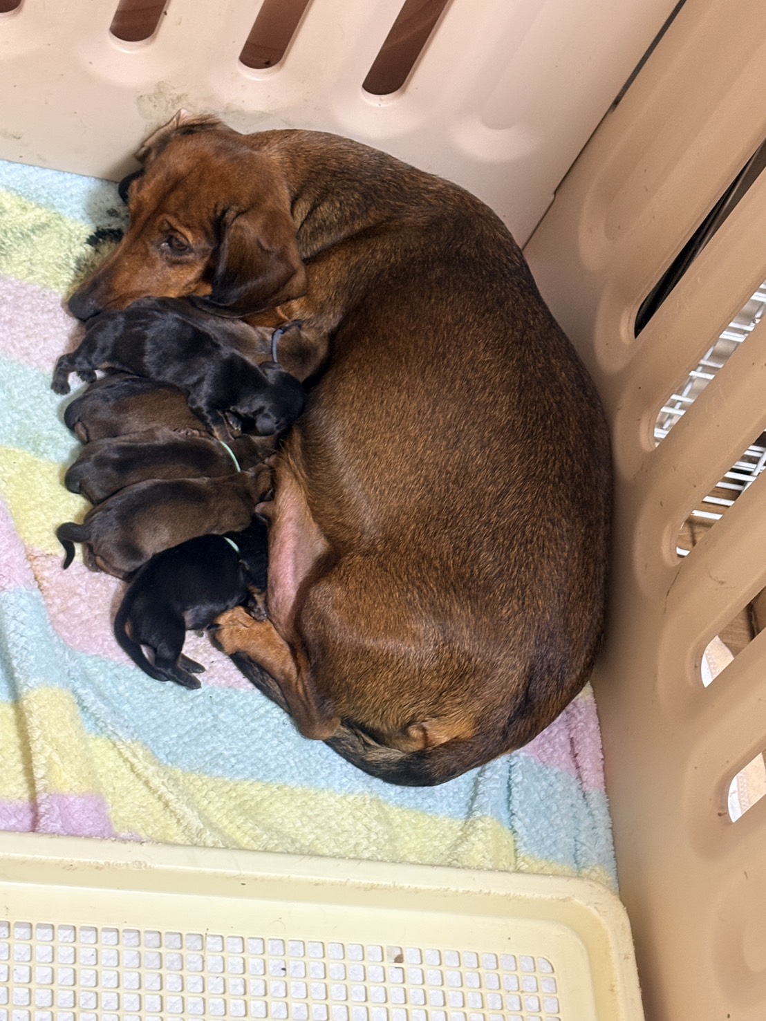 スタンダードスムースダックスフンド:2025年11月9日生(9頭をご紹介中) 2025年11月10日 最終更新日時 : 2025年11月18日 admshu 価格:お問い合わせください ★犬種スタンダードスムースダックスフンド★性別と毛色①ブラックタン♂②レッド♂③ブラックタン♀(紹介終了)④ブラックタン♀⑤ブラックタン♀⑥レッド♀⑦レッド♀⑧レッド♀⑨レッド♀⑩レッド♀★誕生日2025年11月9日★血統書あり(JKC) スタンダードスムースダックスフンドの子犬のご紹介です。価格についてはお問い合わせください。ご連絡をお待ちしております。 母犬 オリーブ 父犬 ブルート 第2報:近影(2025年11月16日) 第1報:出産しました! 「ご案内中の子犬」一覧ページに戻る FacebookXCopy