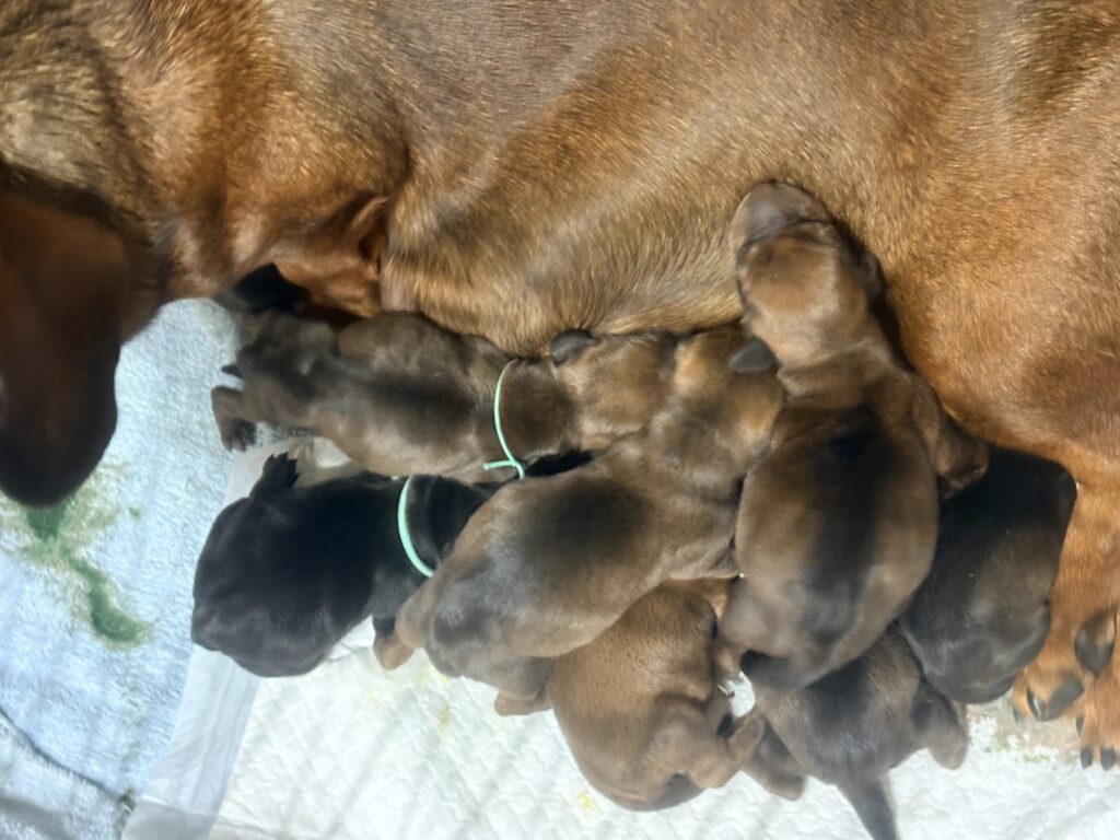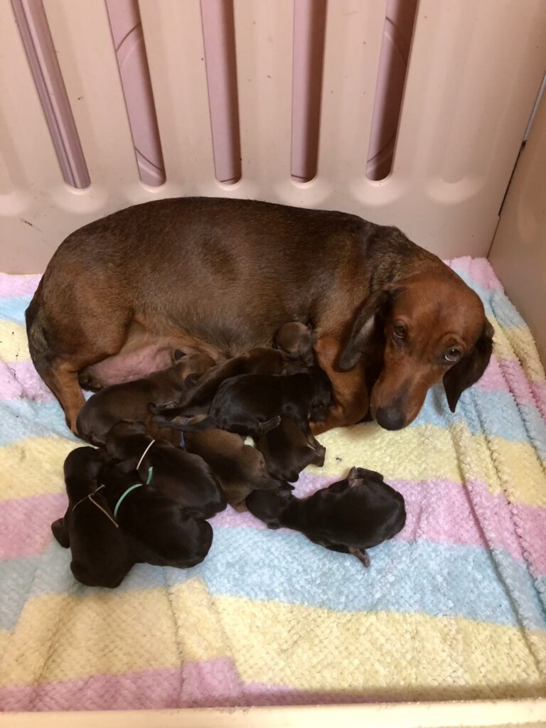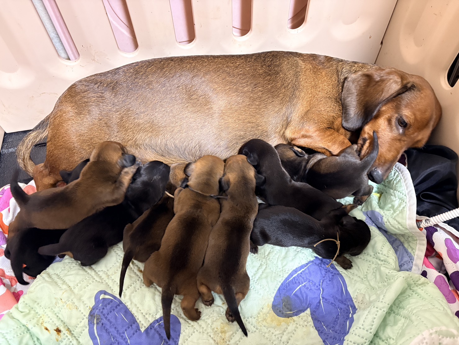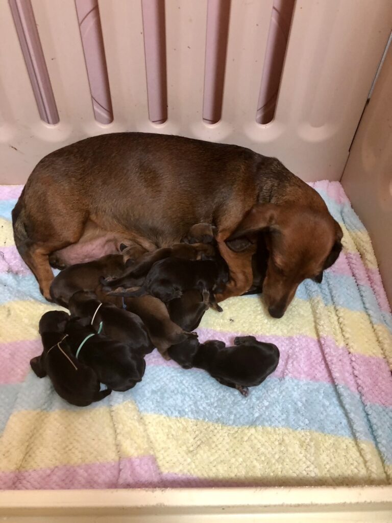 スタンダードスムースダックスフンド:2025年11月9日生(9頭をご紹介中) 2025年11月10日 最終更新日時 : 2025年11月18日 admshu 価格:お問い合わせください ★犬種スタンダードスムースダックスフンド★性別と毛色①ブラックタン♂②レッド♂③ブラックタン♀(紹介終了)④ブラックタン♀⑤ブラックタン♀⑥レッド♀⑦レッド♀⑧レッド♀⑨レッド♀⑩レッド♀★誕生日2025年11月9日★血統書あり(JKC) スタンダードスムースダックスフンドの子犬のご紹介です。価格についてはお問い合わせください。ご連絡をお待ちしております。 母犬 オリーブ 父犬 ブルート 第2報:近影(2025年11月16日) 第1報:出産しました! 「ご案内中の子犬」一覧ページに戻る FacebookXCopy