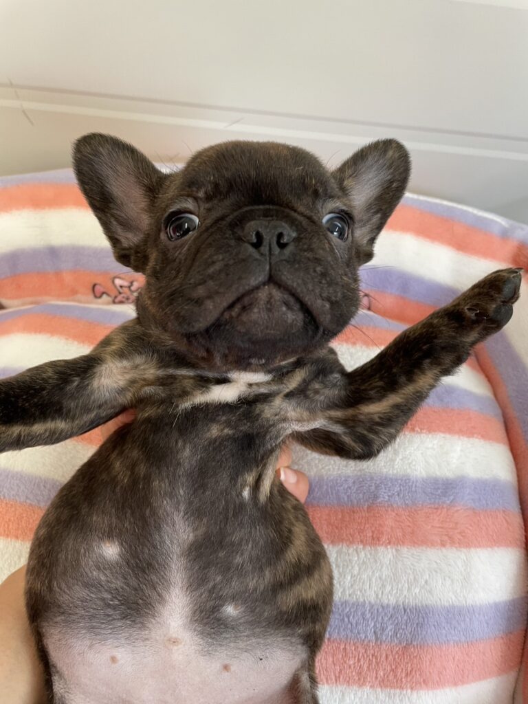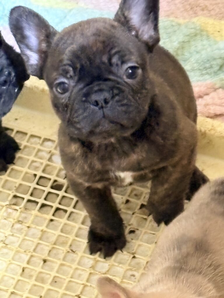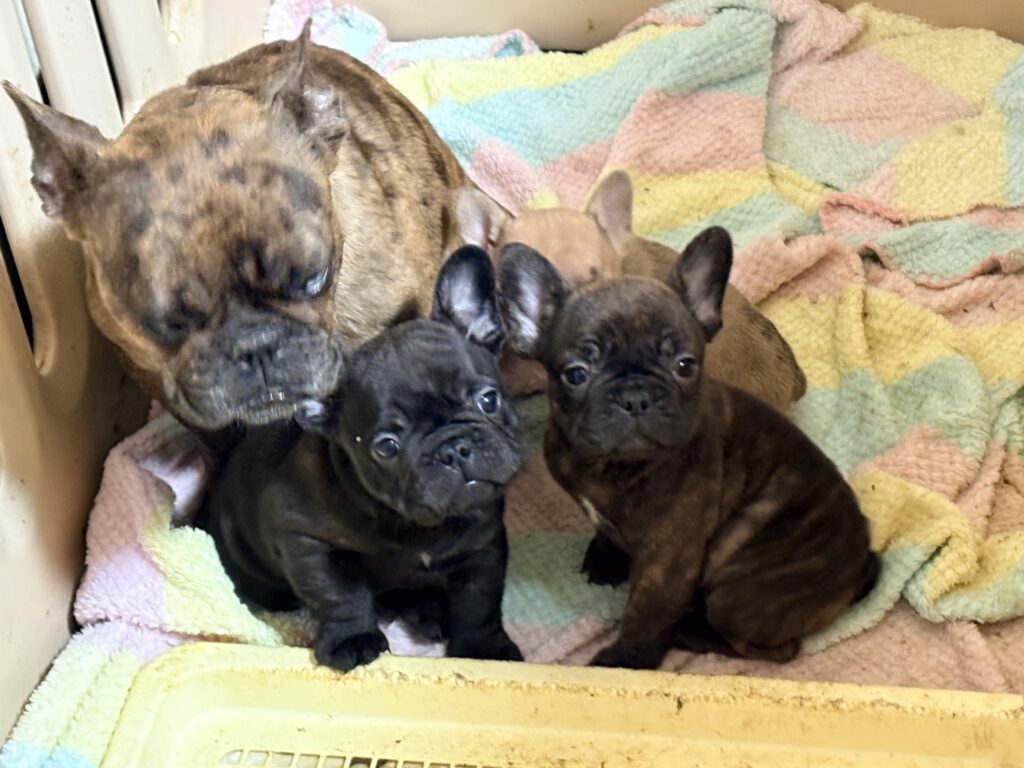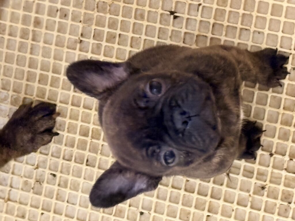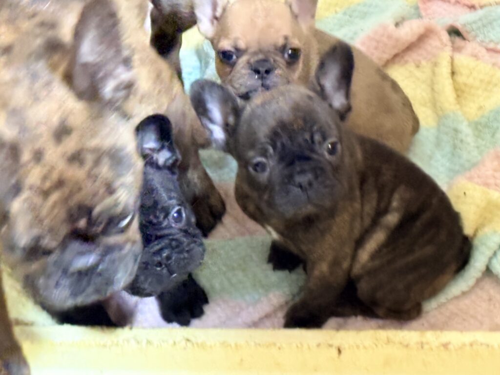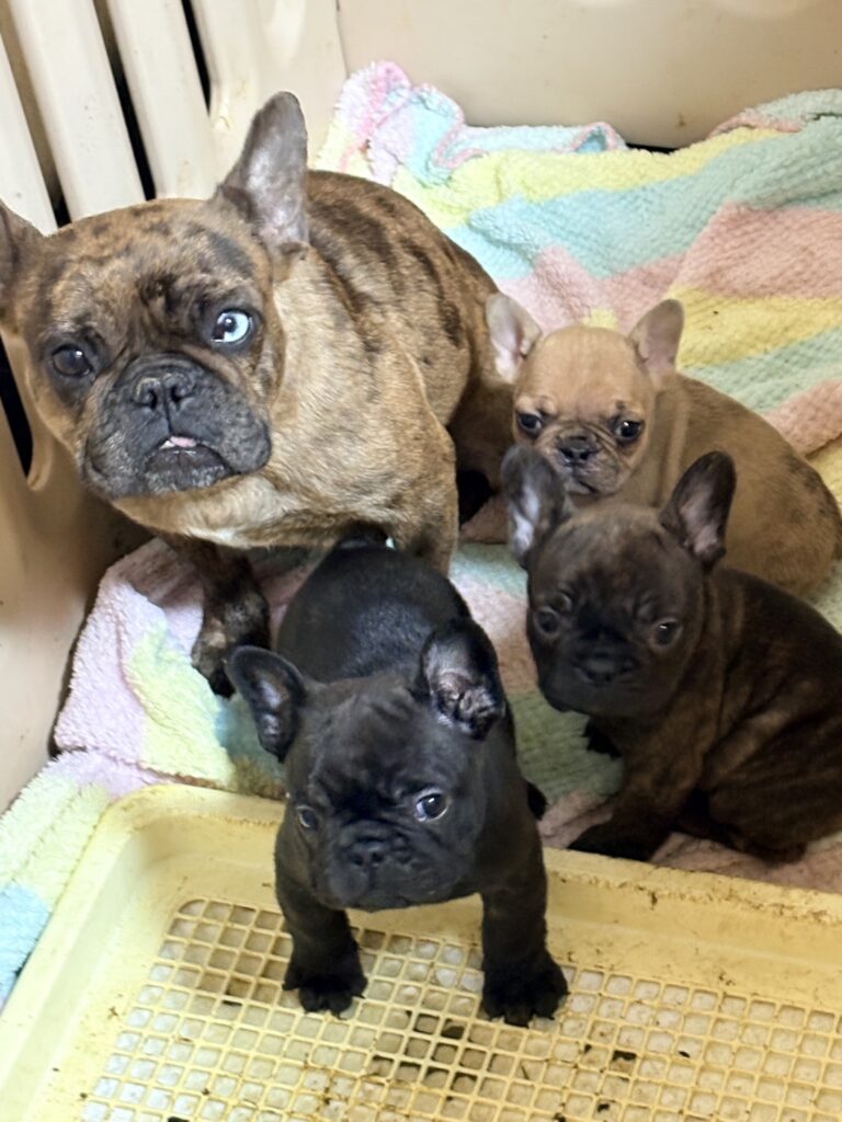 🆙フレンチブルドッグ:2025年12月13日生(3頭をご紹介中) 2025年12月15日 最終更新日時 : 2026年1月31日 admshu 価格:お問い合わせください ★犬種フレンチブルドッグ★性別と毛色①ブリンドル♂②ブリンドルホワイト♀③フォーンマール♀★誕生日2025年12月13日★血統書あり(JKC) フレンチブルドッグの子犬のご紹介です。価格についてはお問い合わせください。ご連絡をお待ちしております。 母犬 まるこ(レッドマール) 父犬 他犬舎様(ブルータン) 第4報:近影(2026年1月31日) 第3報:近影(2026年1月29日) 第3報:近影(2025年12月26日) 第2報:近影(2025年12月18日) 第1報:出産しました! 「ご案内中の子犬」一覧ページに戻る FacebookXCopy