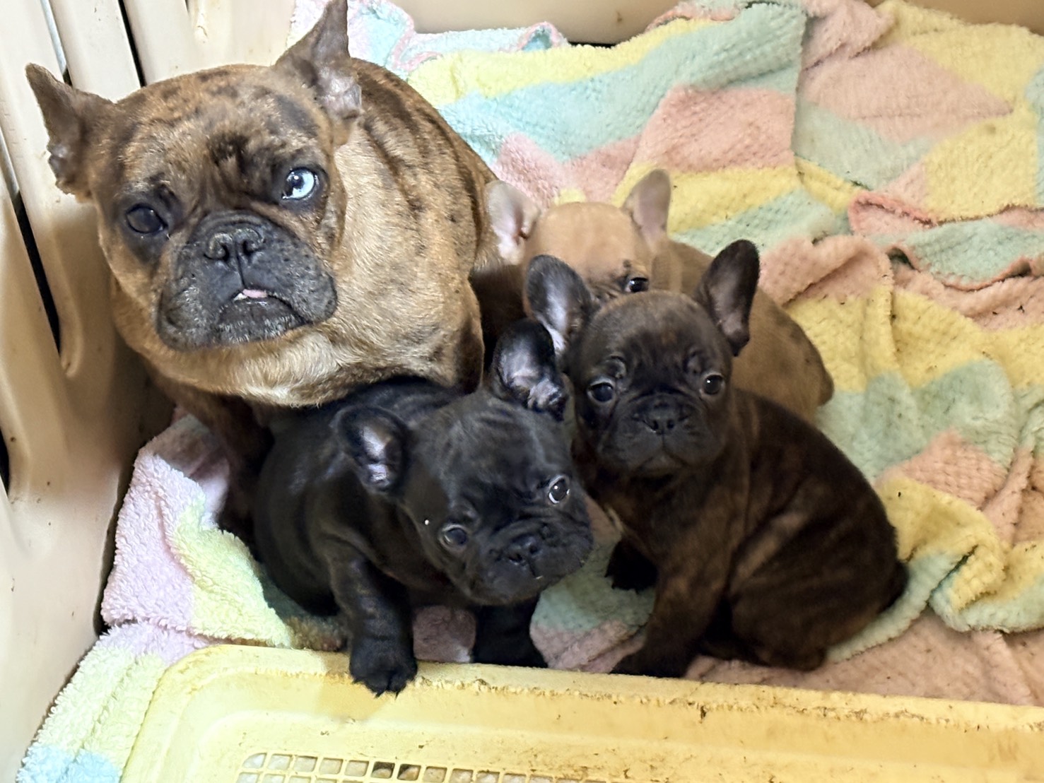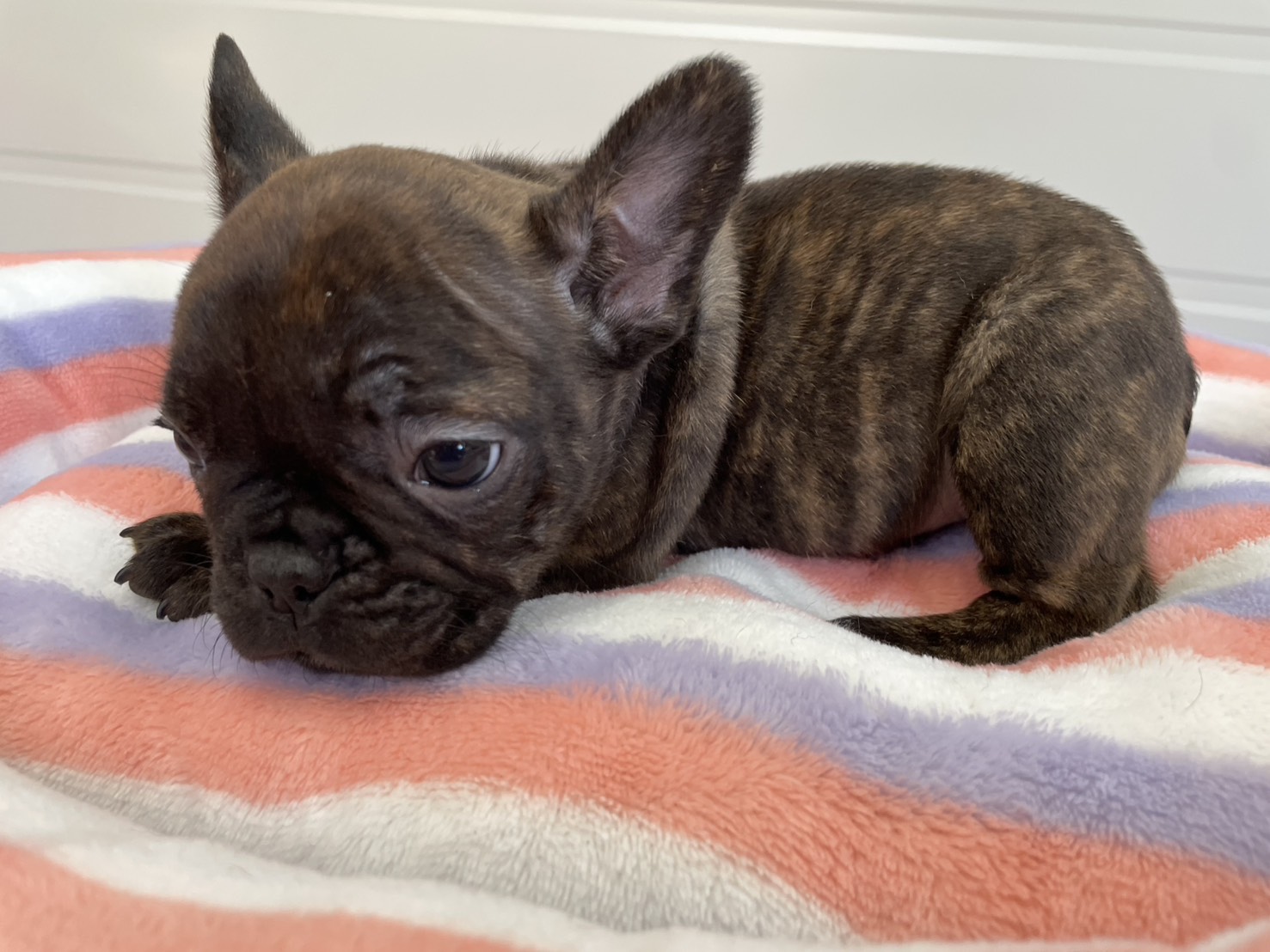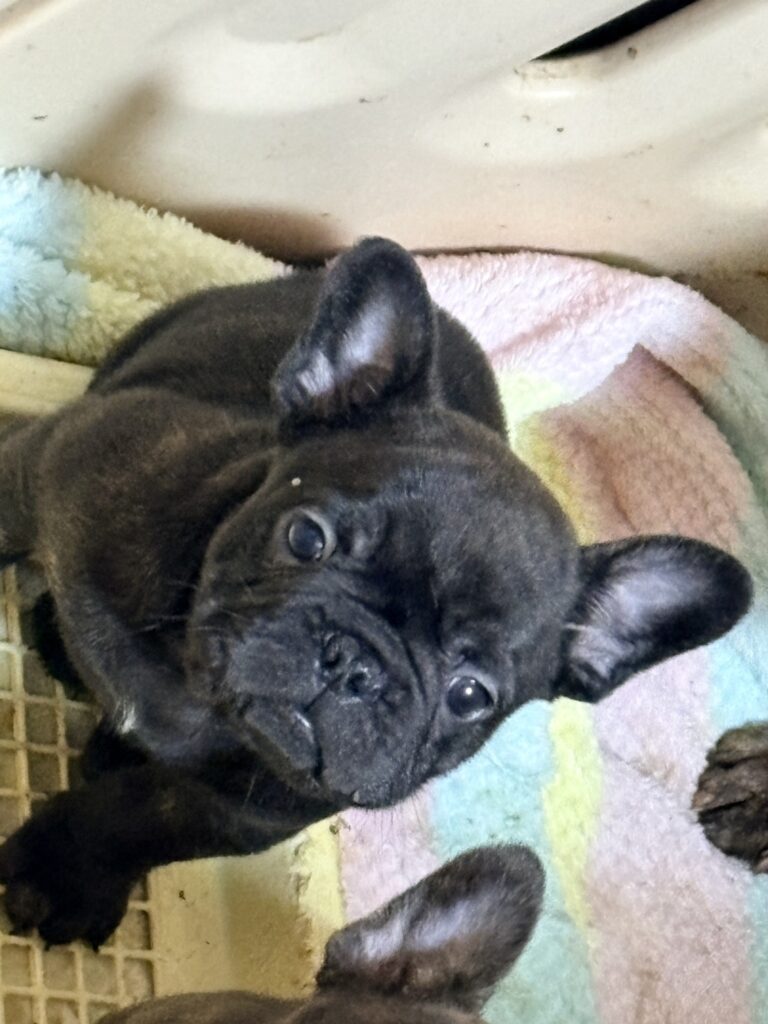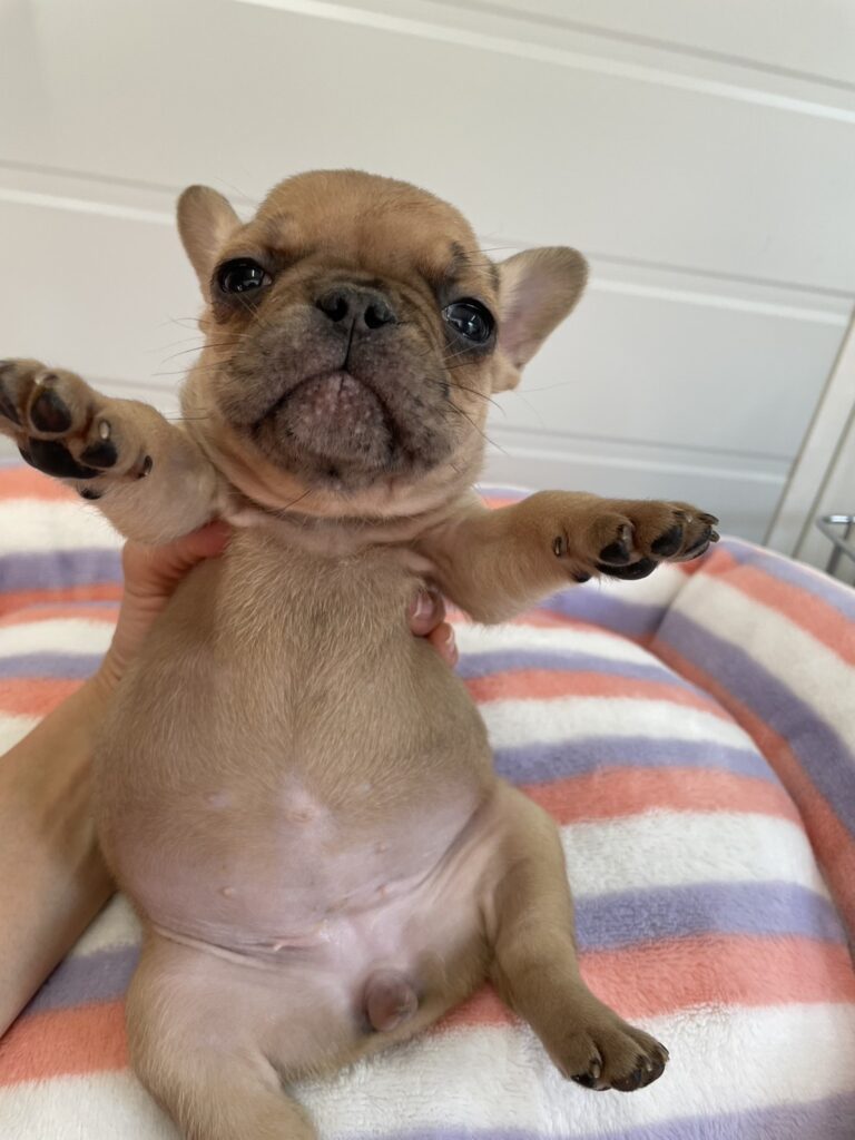 🆙フレンチブルドッグ:2025年12月13日生(3頭をご紹介中) 2025年12月15日 最終更新日時 : 2026年1月31日 admshu 価格:お問い合わせください ★犬種フレンチブルドッグ★性別と毛色①ブリンドル♂②ブリンドルホワイト♀③フォーンマール♀★誕生日2025年12月13日★血統書あり(JKC) フレンチブルドッグの子犬のご紹介です。価格についてはお問い合わせください。ご連絡をお待ちしております。 母犬 まるこ(レッドマール) 父犬 他犬舎様(ブルータン) 第4報:近影(2026年1月31日) 第3報:近影(2026年1月29日) 第3報:近影(2025年12月26日) 第2報:近影(2025年12月18日) 第1報:出産しました! 「ご案内中の子犬」一覧ページに戻る FacebookXCopy