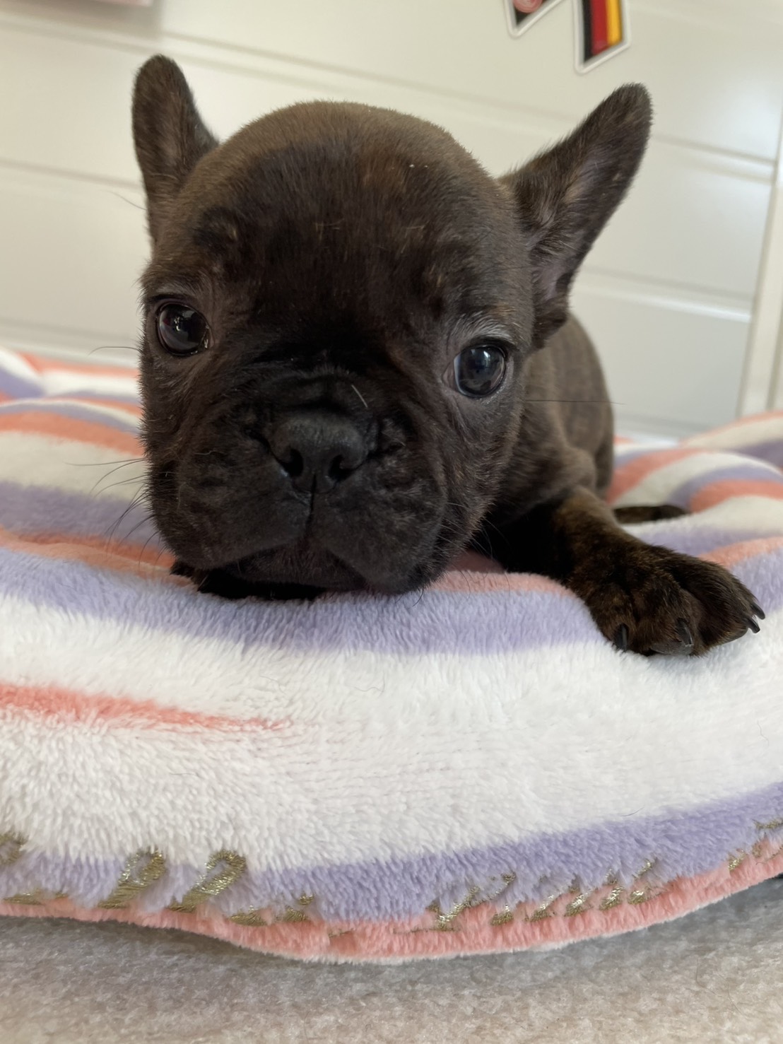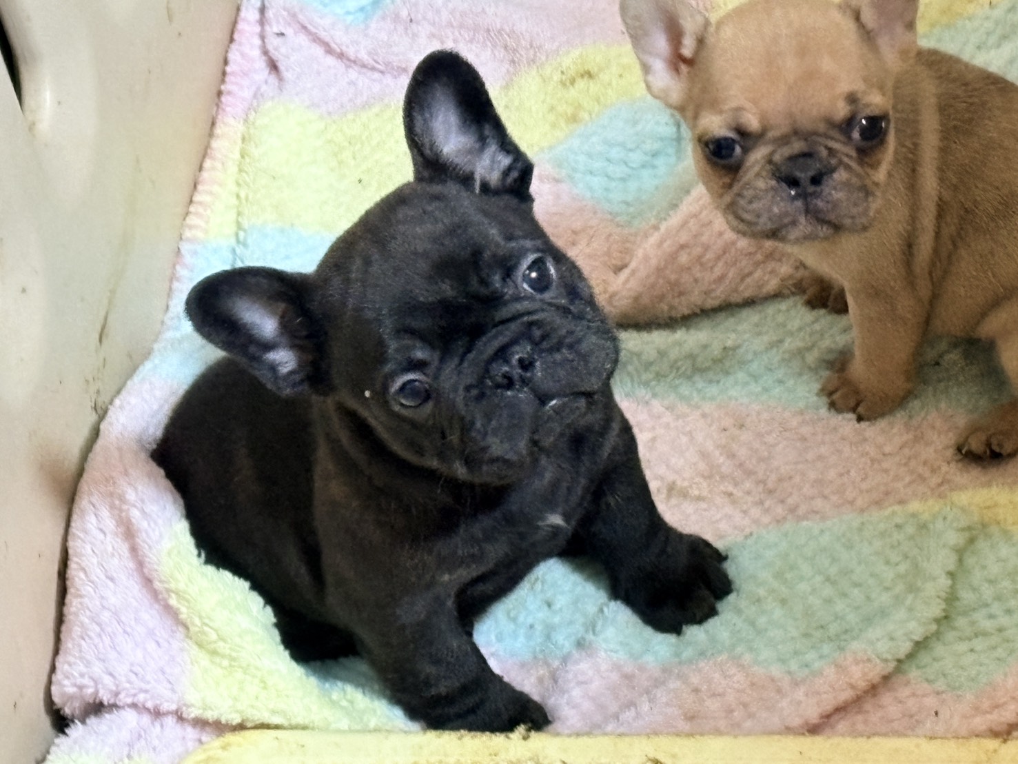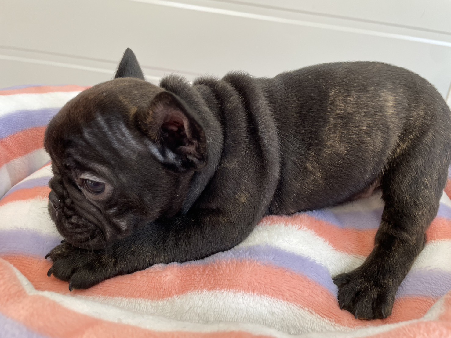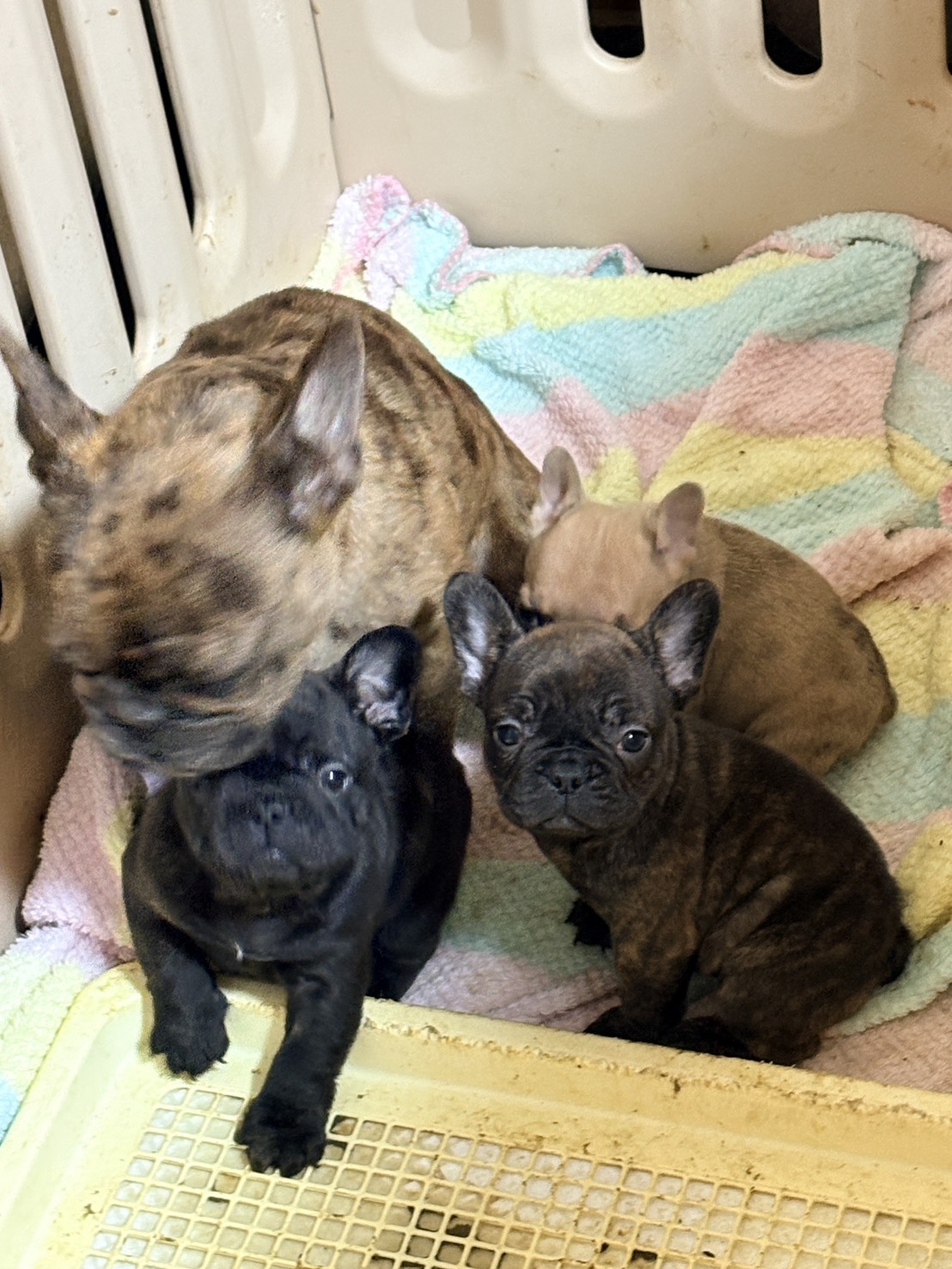 🆙フレンチブルドッグ:2025年12月13日生(3頭をご紹介中) 2025年12月15日 最終更新日時 : 2026年1月31日 admshu 価格:お問い合わせください ★犬種フレンチブルドッグ★性別と毛色①ブリンドル♂②ブリンドルホワイト♀③フォーンマール♀★誕生日2025年12月13日★血統書あり(JKC) フレンチブルドッグの子犬のご紹介です。価格についてはお問い合わせください。ご連絡をお待ちしております。 母犬 まるこ(レッドマール) 父犬 他犬舎様(ブルータン) 第4報:近影(2026年1月31日) 第3報:近影(2026年1月29日) 第3報:近影(2025年12月26日) 第2報:近影(2025年12月18日) 第1報:出産しました! 「ご案内中の子犬」一覧ページに戻る FacebookXCopy