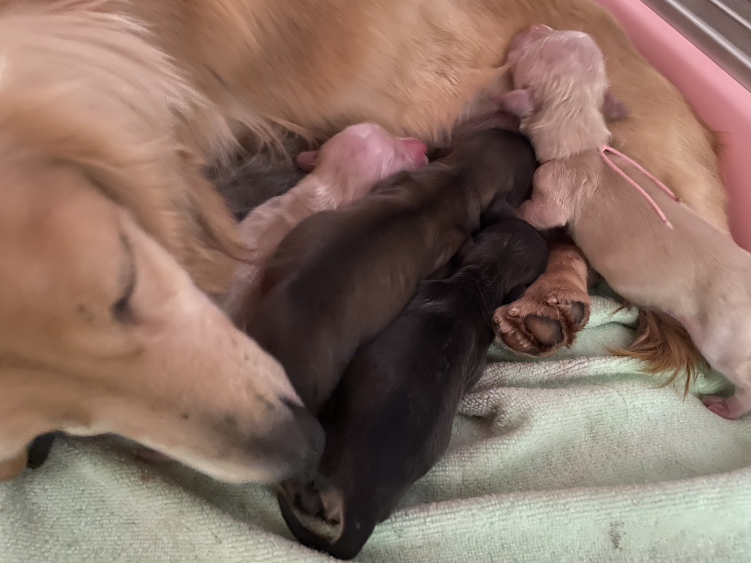カニンヘンロングダックスフンド:2026年2月7日生(3頭をご紹介中) 2026年2月14日 最終更新日時 : 2026年2月18日 admshu 価格:お問い合わせください ★犬種カニンヘンロングダックスフンド★性別と毛色①シェーデットイエロー♂②シェーデットイエロー♂③ピュアクリーム♀★誕生日2026年2月7日★血統書あり(JKC) カニンヘンロングダックスフンドの子犬のご紹介です。価格についてはお問い合わせください。ご連絡をお待ちしております。 母犬🏅JKCチャンピオン直娘 ロージー 父犬🏅JKCチャンピオン モーツァルト 第1報:出産しました! 「ご案内中の子犬」一覧ページに戻る FacebookXCopy