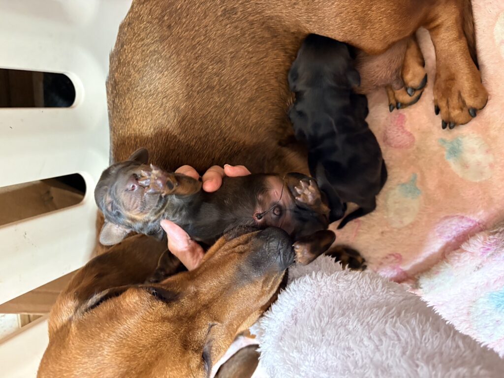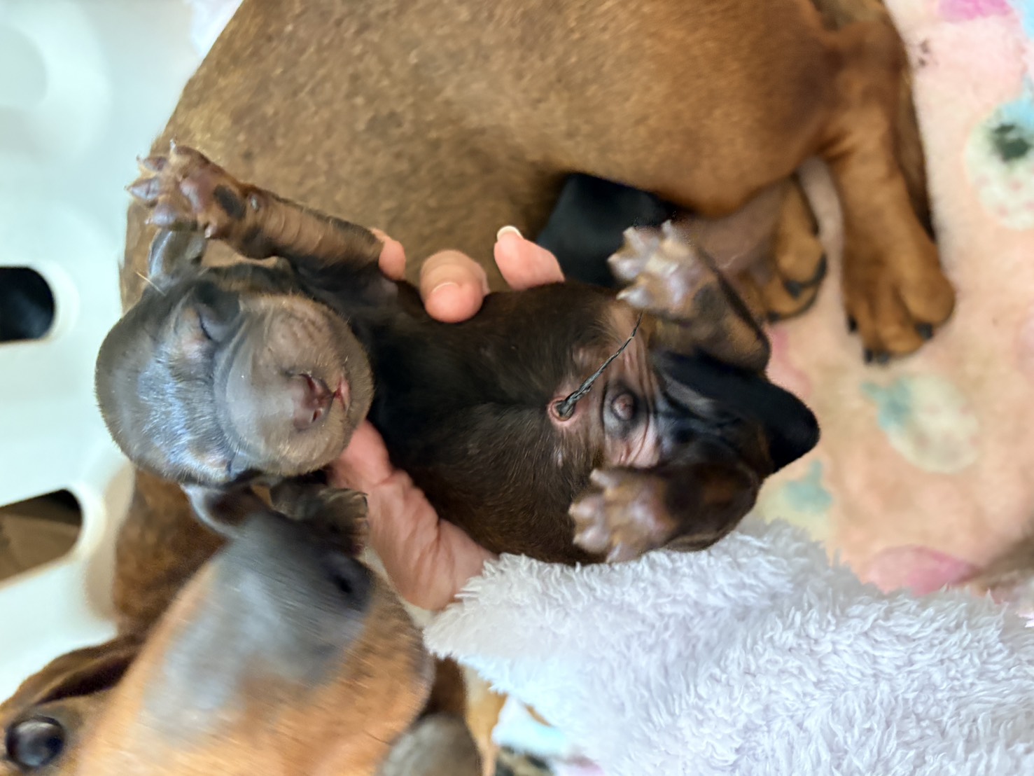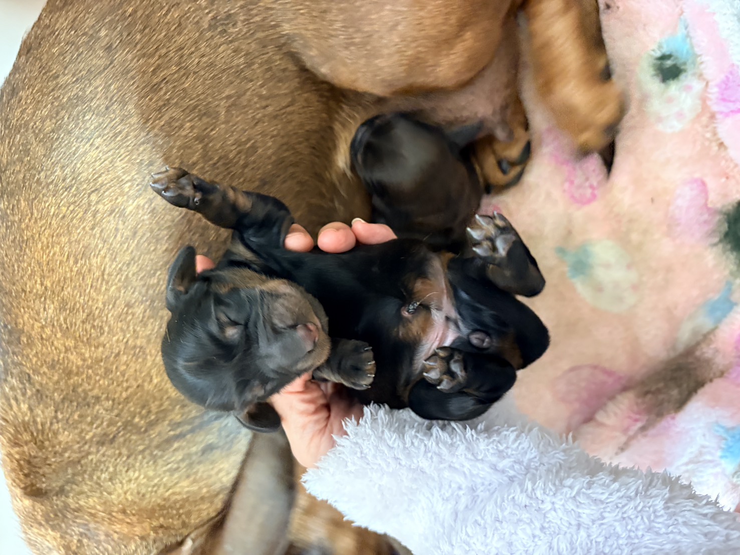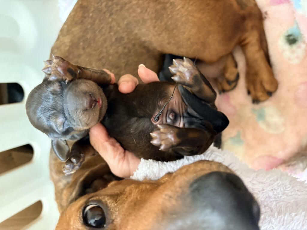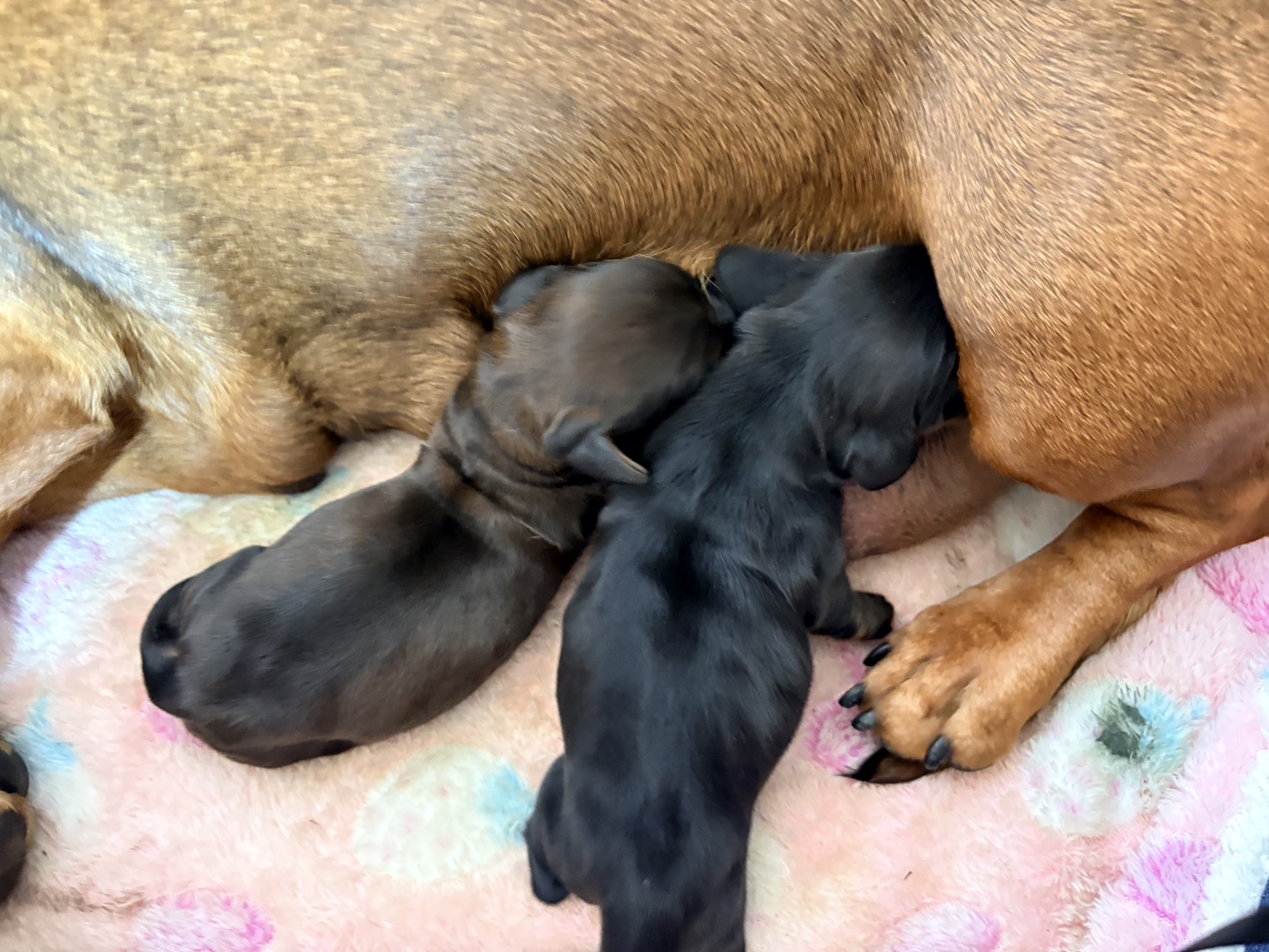 スタンダードスムースダックスフンド:2026年2月12日生(2頭をご紹介中) 2026年2月14日 最終更新日時 : 2026年2月18日 admshu 価格:お問い合わせください ★犬種スタンダードスムースダックスフンド★性別と毛色①レッド♂②ブラック&タン♀★誕生日2026年2月12日★血統書あり(JKC) スタンダードスムースダックスフンドの子犬のご紹介です。価格についてはお問い合わせください。ご連絡をお待ちしております。 母犬 ベッキー 父犬 千春 第1報:出産しました! 「ご案内中の子犬」一覧ページに戻る FacebookXCopy